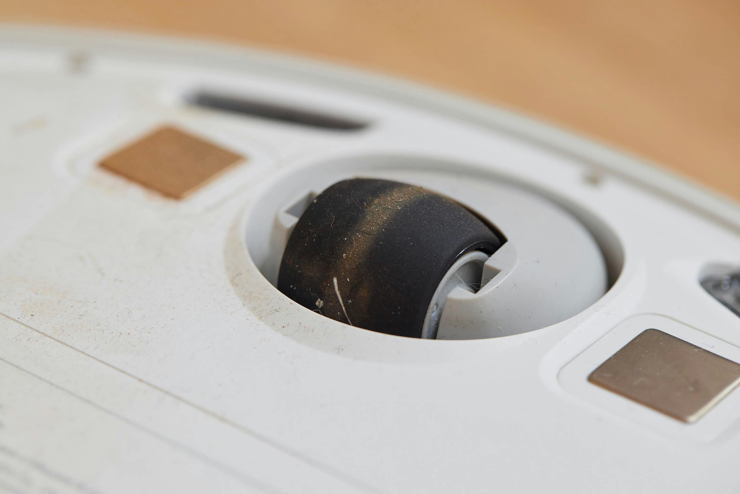 De wielen van je robotstofzuiger kunnen ook vuil opvangen dat de beweging belemmert. Maak de wielen schoon met een zachte, droge doek en zorg ervoor dat ze vrij kunnen draaien. Vergeet ook het kleine wieltje vooraan niet; daar zit snel aangekoekt vuil aan. Meestal kun je dit kleine wieltje met een beetje kracht lostrekken.