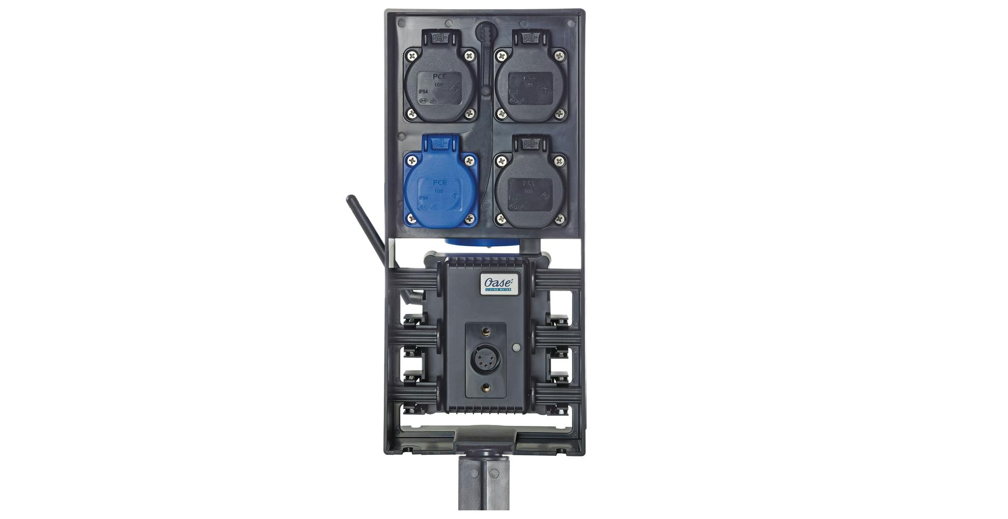 Met dit product van Oase creëer je een slim stroompunt in de tuin. Vervolgens bedien je diverse tuin- en vijverapparaten van hetzelfde merk met een computer, tablet of smartphone. Denk onder meer aan pompen, filters en verlichting. De behuizing bevat vier stopcontacten (waarvan één dimbaar) en een wifi-antenne met een bereik van ongeveer tachtig meter. De fabrikant levert ook een afstandsbediening mee.