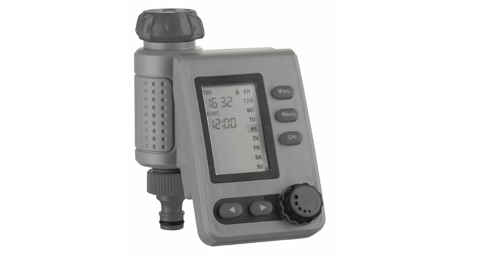 Zoek je een eenvoudige bewateringscomputer zonder app-bediening? Dit exemplaar van Talen Tools bevat een geïntegreerd scherm, waarop je voor elke dag de gewenste sproeitijd instelt. Je kunt ook kiezen voor een interval van zes of twaalf uur. Aansluiten is een fluitje van een cent. Je plaats het apparaat namelijk tussen de waterkraan en tuinslang met sprinkler. Dit besproeiingssysteem werkt op AA-batterijen. Laat je overigens niet foppen door de relatief hoge adviesprijs. Diverse (web)winkels verkopen dit product voor minder.