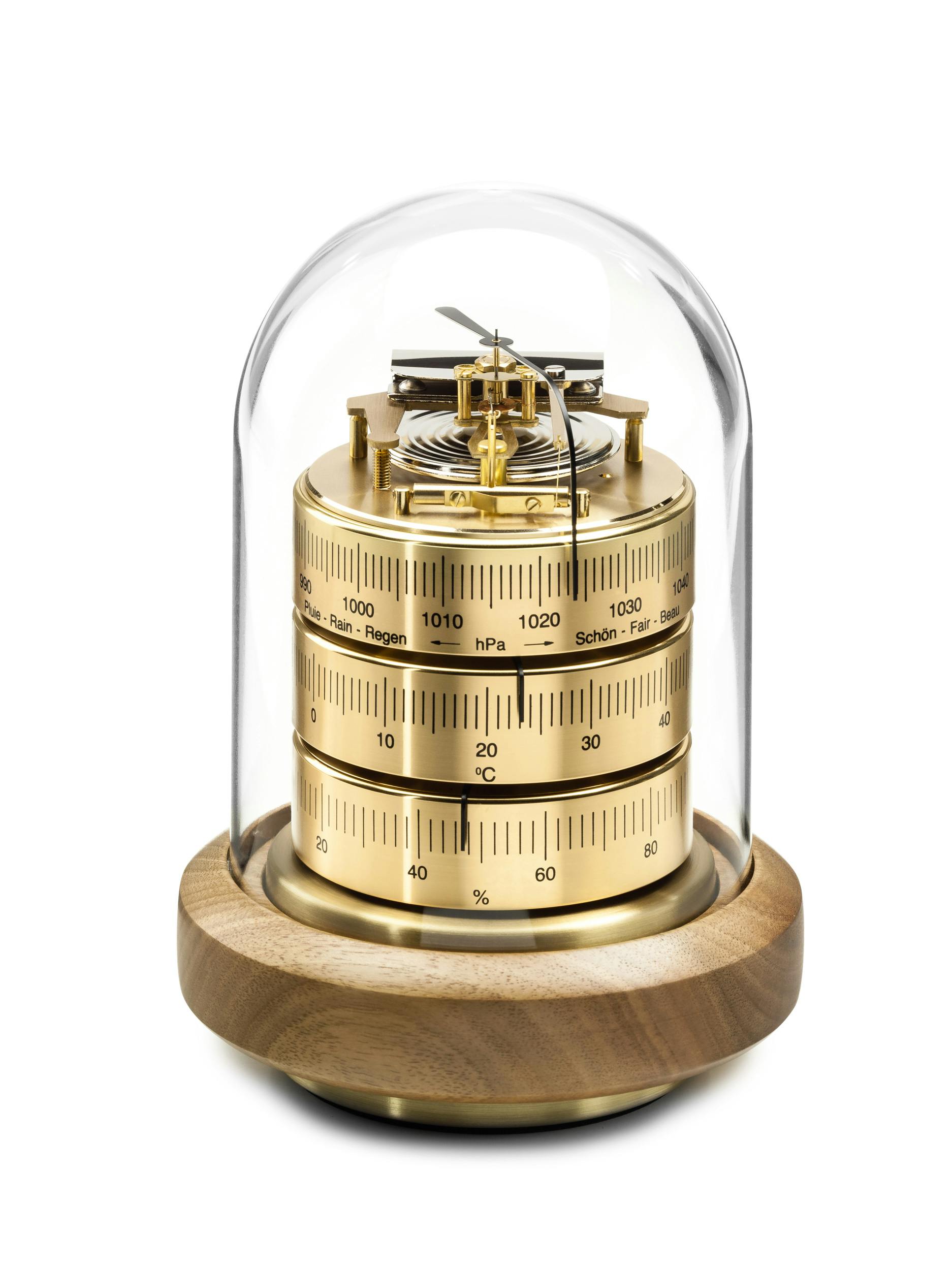 Dit bijzonder fraaie analoge weerstation doet wat digitale tegenhangers ook doen; hij meet namelijk de luchtdruk, temperatuur en luchtvochtigheid. Hiervoor bevat de Barigo 3026 drie metalen ringen. Aan de hand van de zwarte wijzertjes lees je de actuele waarden af. De geïntegreerde barometer bevat ook nog speciale aanduidingen; hiermee voorspelt het weerstation het weertype voor de komende uren.