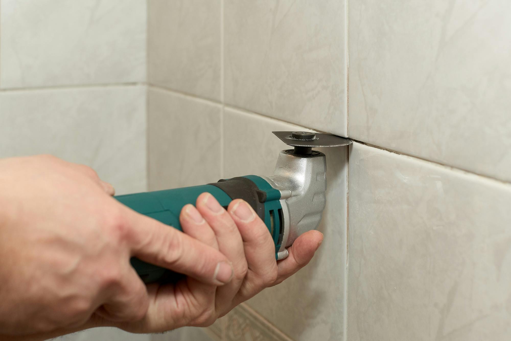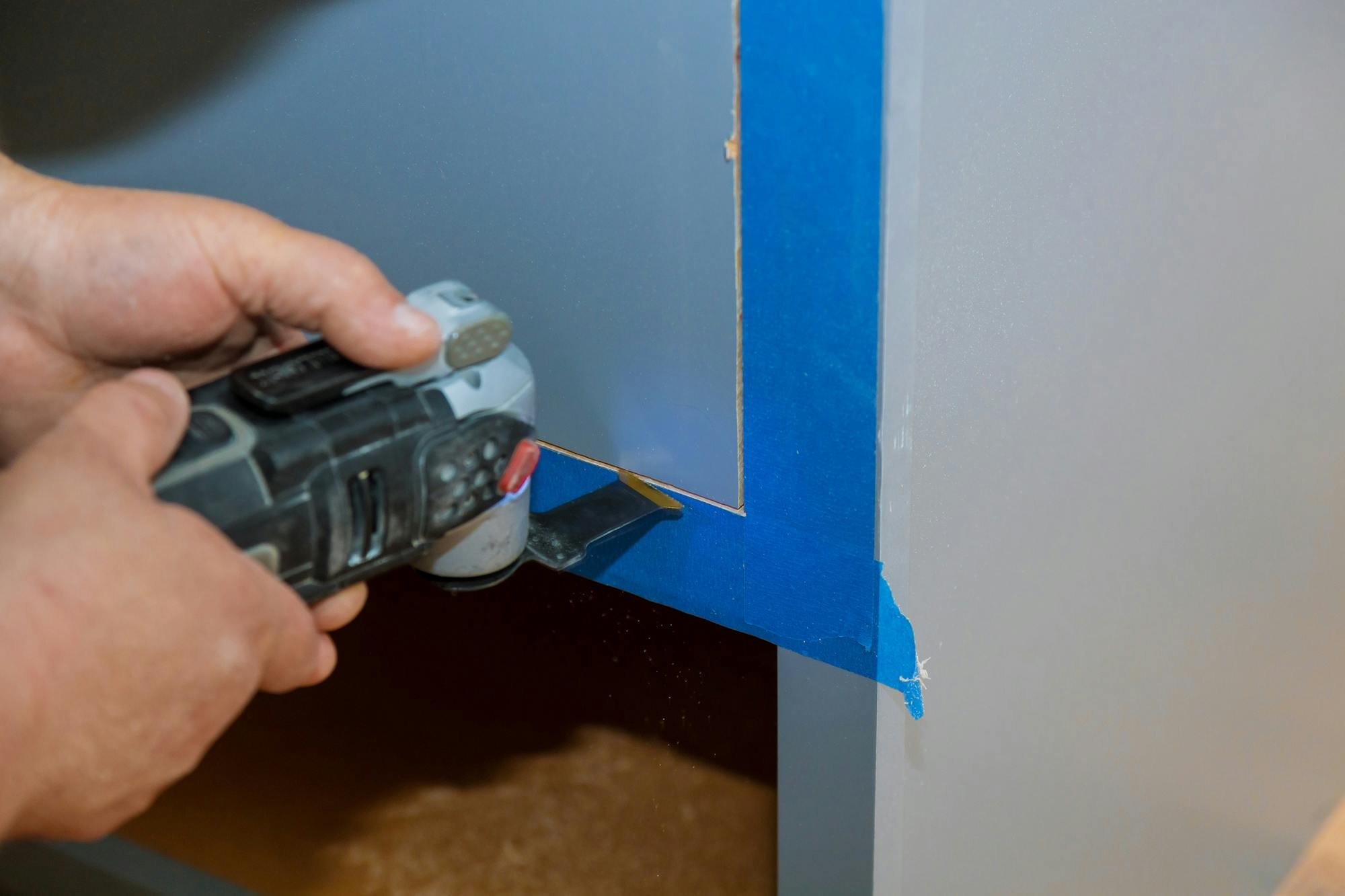 Invallend zagen: bij invallend zagen bewerk je een voorwerp, maar begin je niet aan de zijkant. Denk aan het zagen van een inkeping voor een scharnier in een deur of een gat in een badkamerkastje voor een doorgang voor een leiding. In dat soort situaties biedt de multitool uitkomst. Kies als opzetstuk het invalzaagblad. Hiermee hoef je niet per se aan de rand van een object te beginnen. Met dit type zaag kun je ook bijvoorbeeld een lat, plank of buis inkorten.