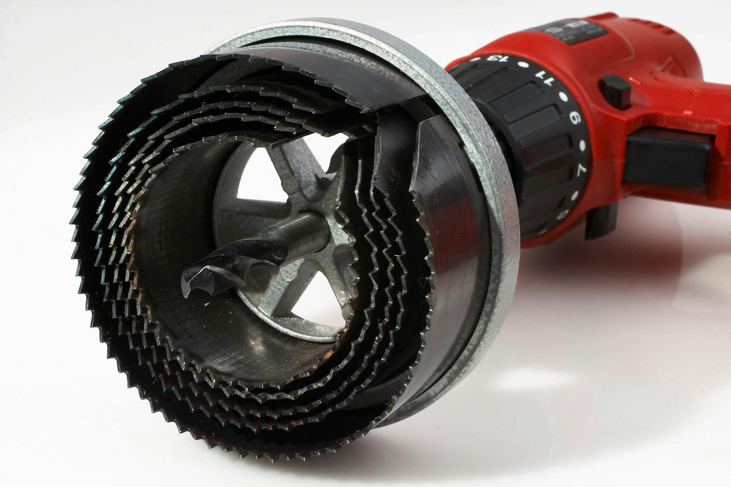 Een gatenzaag is een ronde zaag die je op je boormachine plaatst. Standaard hollewanddozen hebben een diameter van 76 mm en een diepte van 50 mm. Boor het gat bij een solide muur iets dieper, omdat je de wanddoos dan makkelijker vast kunt zetten met bijvoorbeeld gips. Bij een holle gipswand is het vooral belangrijk dat je zeker weet dat er achter de wand genoeg ruimte is.