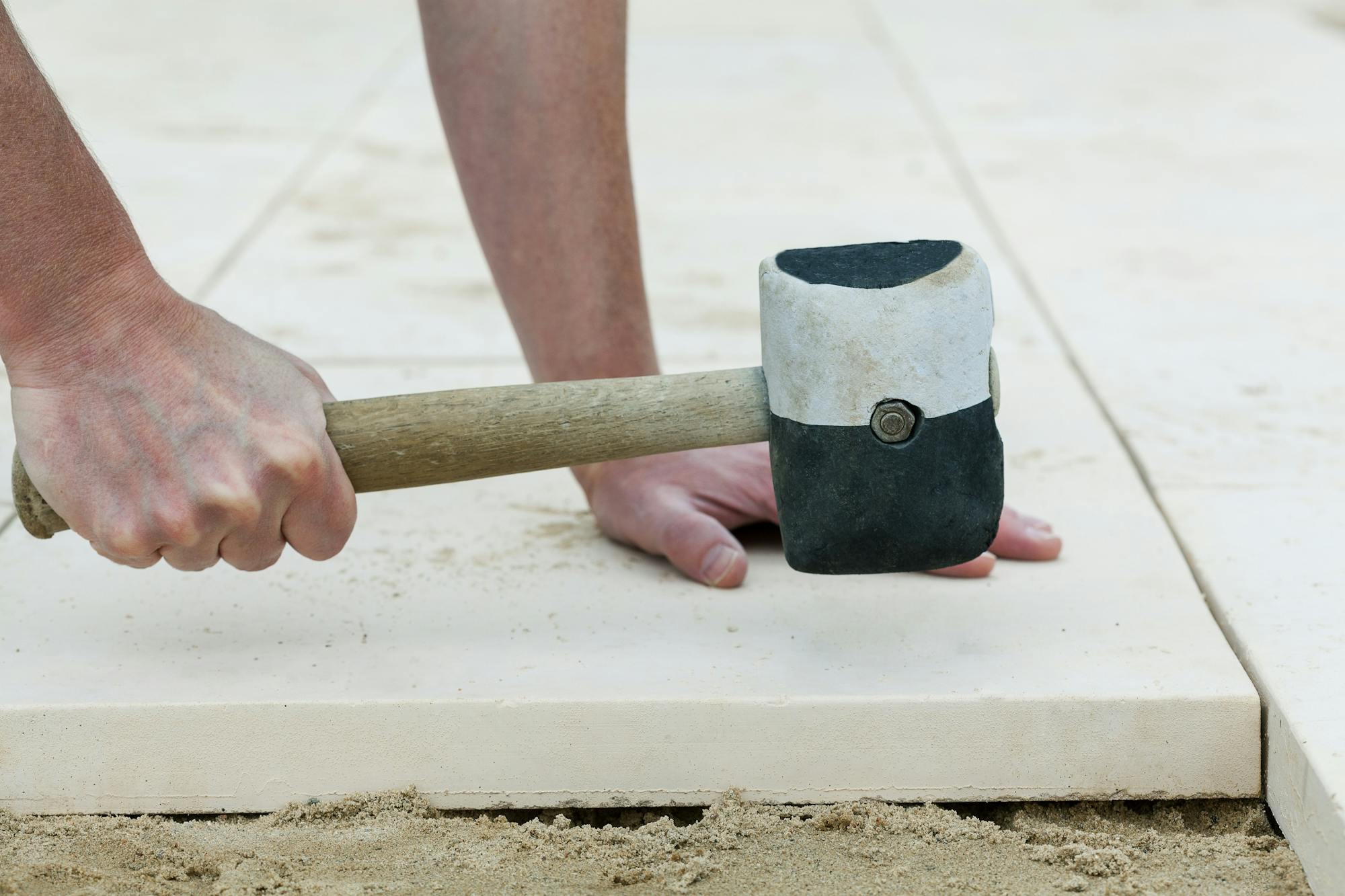 De triplaat is hiervoor het aangewezen hulpmiddel. Dat is een klein en zwaar karretje dat trillingen veroorzaakt en hierdoor het zand als het ware aanstampt. We raden je aan om in rondjes en van buiten naar binnen te werken zodat je geen delen vergeet.