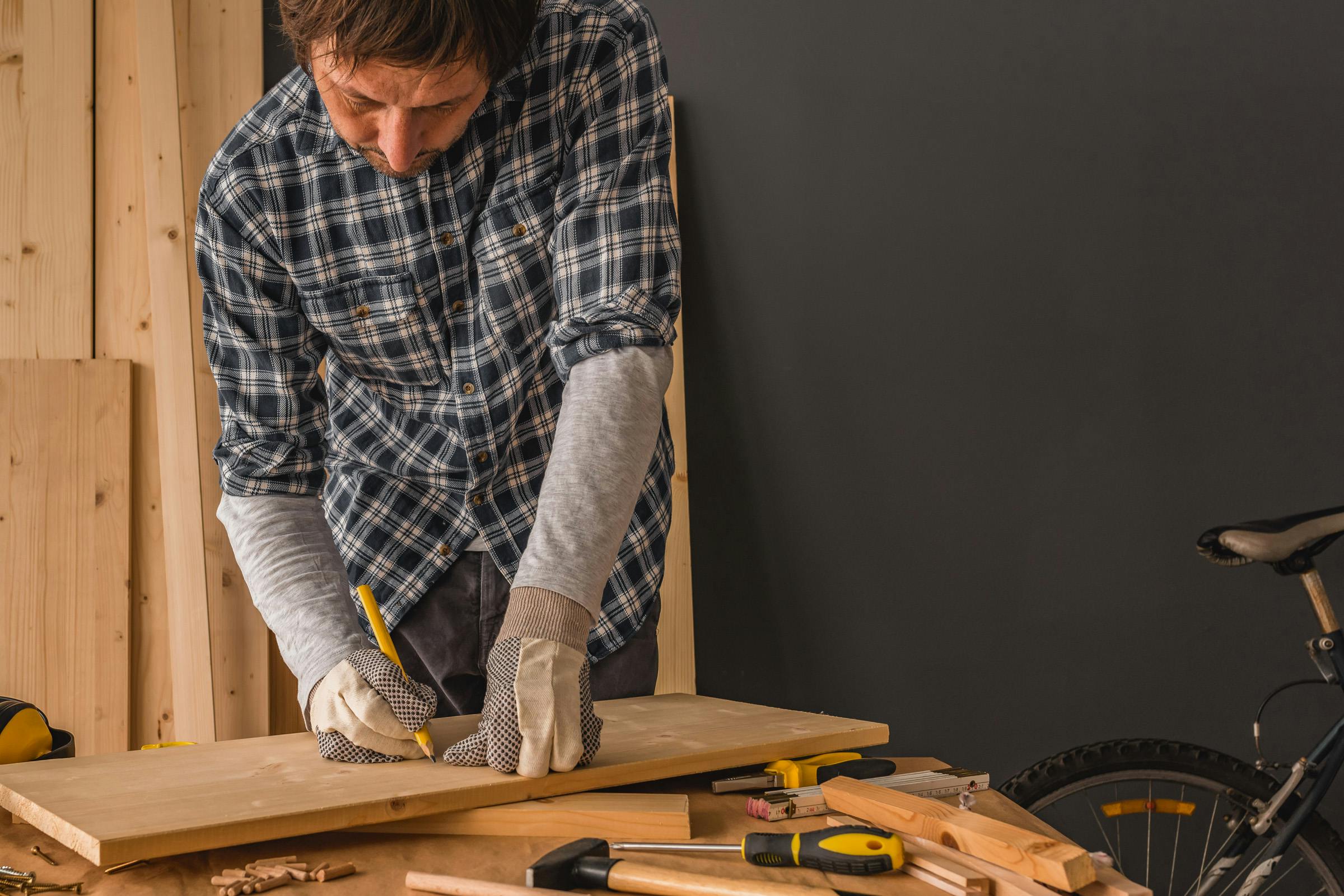 Een houten plank van 30 cm breed moet voor deze stukken minstens 50 + 61,4 + 50 = 171,4 cm lang zijn. Het is makkelijk om het bij de bouwmarkt op maat te laten zagen. Maar je kunt dit natuurlijk ook zelf doen.