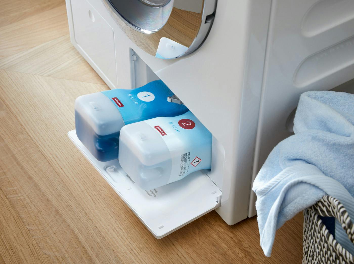 Gebruik altijd vloeibaar wasmiddel. Veel fabrikanten raden hun eigen merk aan (zoals bijvoorbeeld Miele UltraPhase). In de praktijk werken veel gangbare A-merken ook goed, zolang ze niet te dik of sterk schuimend zijn. Vermijd ecologische of geconcentreerde wasmiddelen die speciaal zijn ontwikkeld voor handmatige dosering, tenzij het systeem ze aankan. Bij sommige merken slimme wasmachines (zoals Bosch en Siemens) kun je met de app de barcode op je eigen wasmiddelen scannen. De app stuurt dan informatie over de concentratie van je wasmiddel en de waterhardheid automatisch door naar de wasmachine, zodat echt altijd de juiste dosering wordt gebruikt.