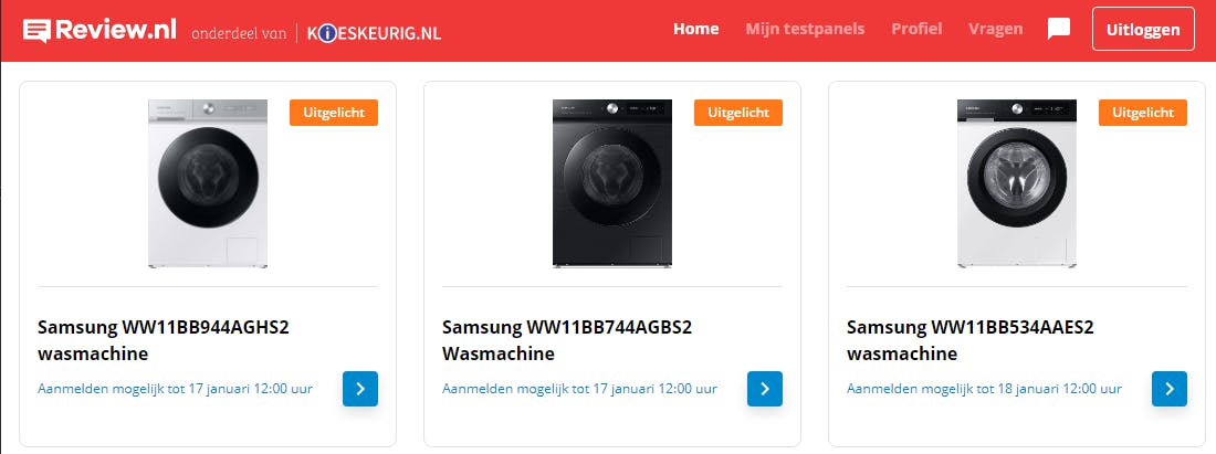 De producten die je kunt testen variëren – denk bijvoorbeeld aan laptops, televisies, barbecues, airfryers, koffiezetapparaten, smartphones en nog veel meer. Voor de komende periode worden testers gezocht die aan de slag willen gaan met een review over een duurzame wasmachines en drogers.