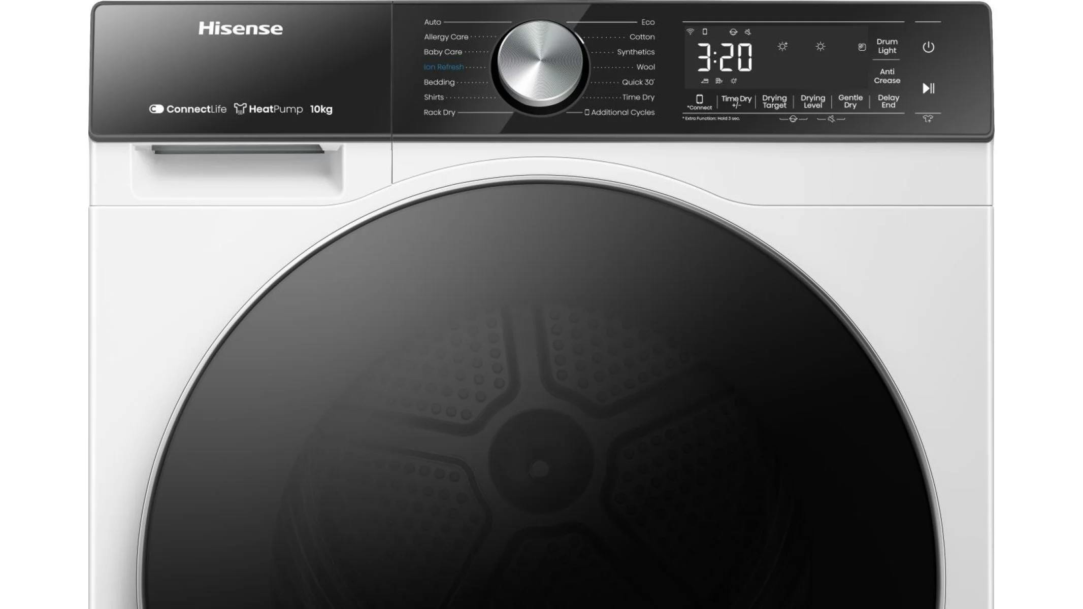 De Hisense DH5S102BW is een warmtepompdroger die opvalt door zijn efficiëntie, capaciteit én slimme technologie. De ruime trommel van 10 kg maakt hem geschikt voor grotere ladingen, terwijl functies als automatisch drogen en de Quick Dry-stand zorgen dat je altijd het juiste programma kiest - snel én zuinig. Daarbij past het Autoprogramma zich automatisch aan jouw droogbehoeften aan, zodat je nooit hoeft te gokken wat het beste is voor je was. Extra prettig: de Allergy Care-functie voegt een extra droogcyclus toe voor een allergeenvrij resultaat.