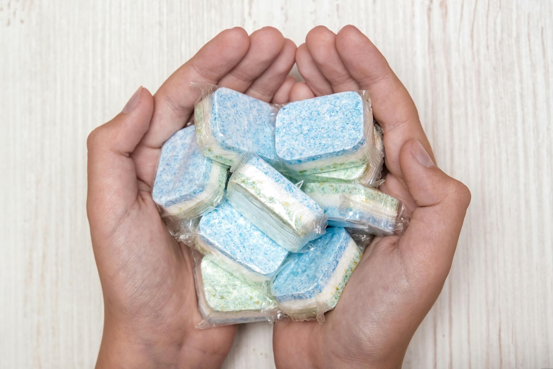 Een vaatwastablet om de wasmachine te ontkalken