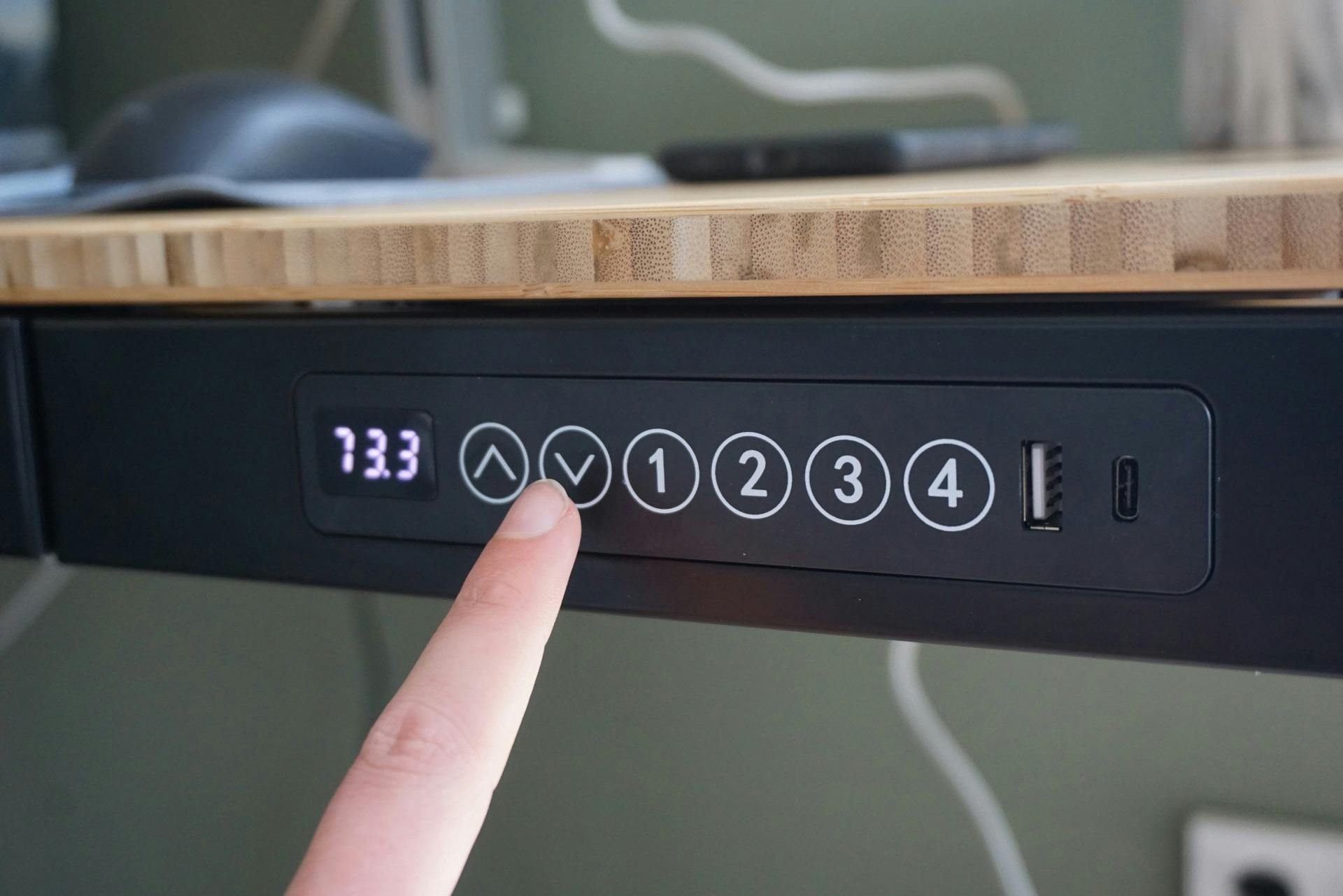 De zit-sta-ervaring van de Flexispot Q8 bevalt mij erg goed. Ten eerste omdat je vier standen kunt instellen die het bureau onthoudt. Zo kan ik met één druk op de knop wisselen tussen mijn ideale hoogtes voor zittend en staand werken en heb ik er nog twee over. Zo kan mijn vriendin ook zit- en stahoogtes aangeven. De bediening via de knoppen met het kleine schermpje werkt gebruiksvriendelijk. Wisselen tussen de standen gaat soepel dankzij twee motoren. En slimme technologie in het bureau voorkomt dat het bureaublad bij het wisselen in hoogte botst op een klein kind, huisdier of achteloos verplaatste vuilnisbak. Je kunt het antibotsingsmechanisme uitschakelen, maar ik zou dat niet doen.