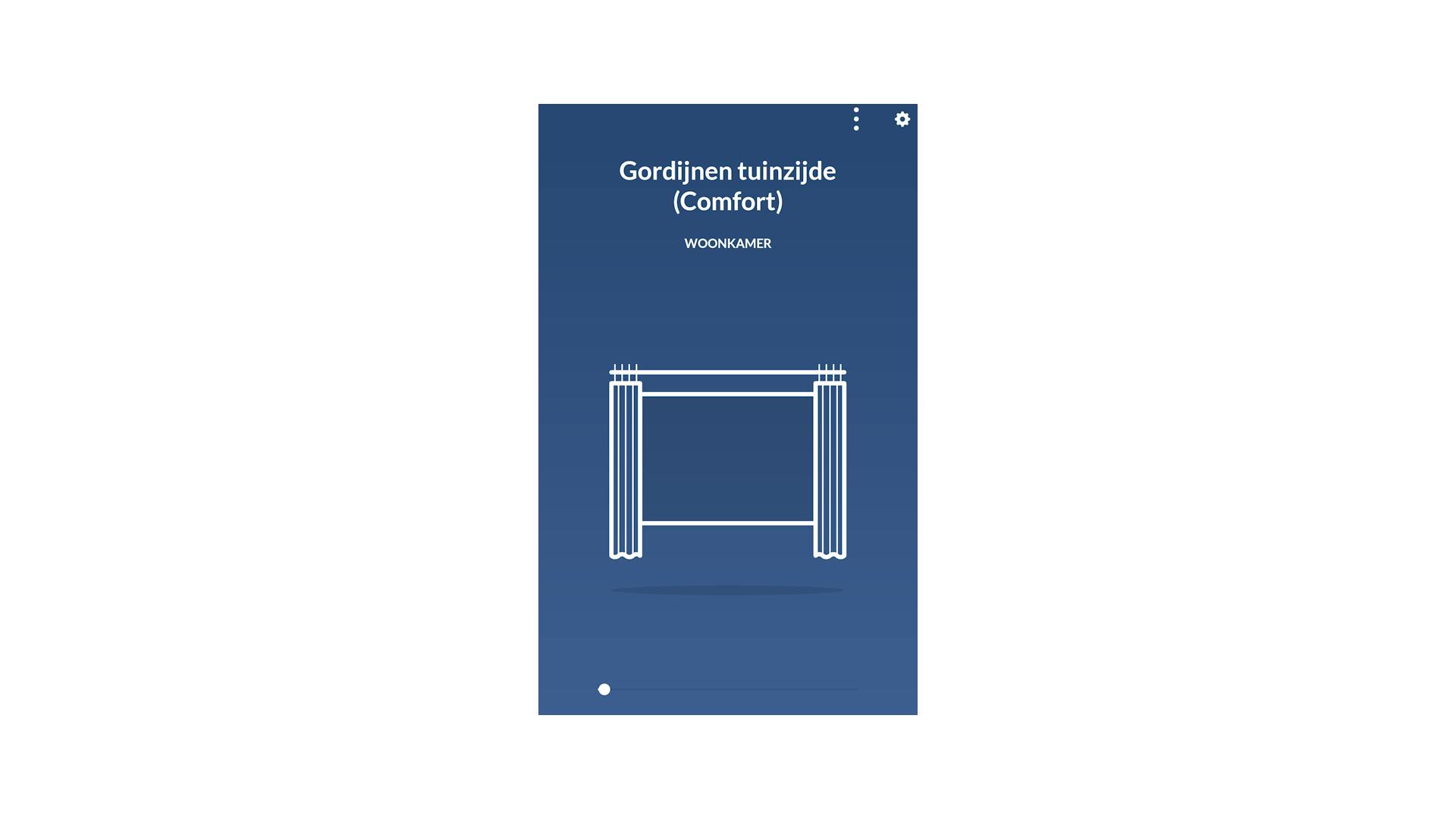 Het Slide-systeem is met de app eenvoudig te bedienen. Op het hoofdscherm kun je de gordijnen direct openen en sluiten door middel van het verplaatsen van het schuifje in de app.
