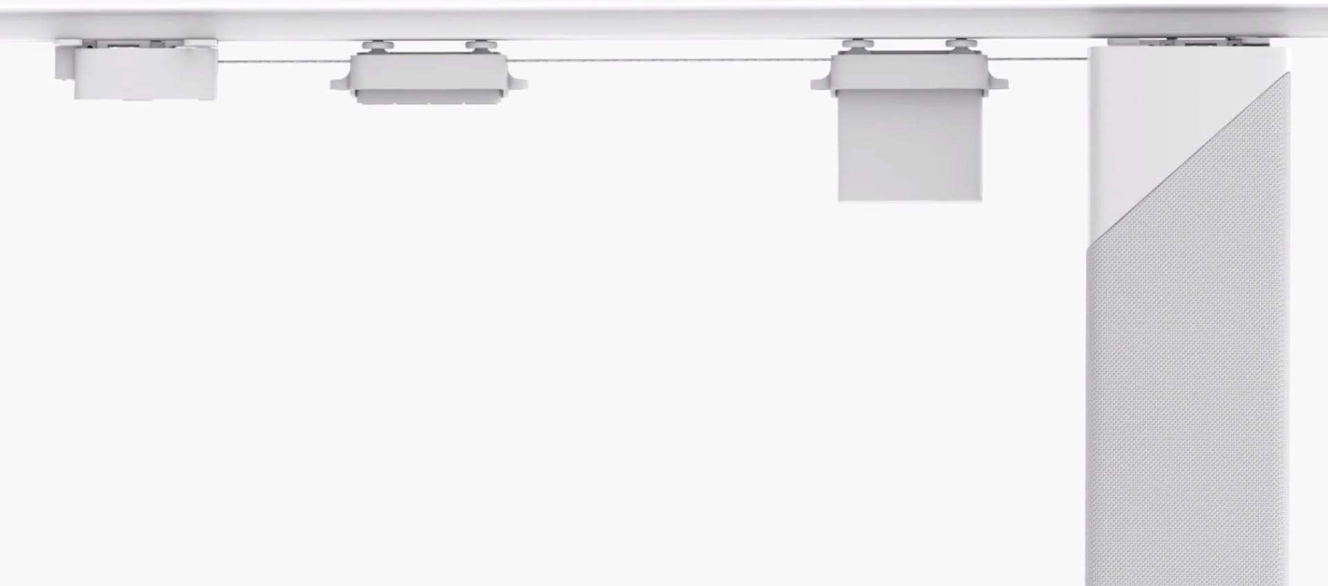 Het Slide-systeem bestaat uit een relatief grote motor-unit, een doorlopende kabel, twee montagestukken die je op de laatste stopper en een glijder plaatst - bij dubbelde gordijnen doe je dat zowel links als rechts - en zogeheten gliders die je aan de buitenste gordijnhaken plaatst, zodat de gordijnen door de kabels open of dicht worden getrokken.