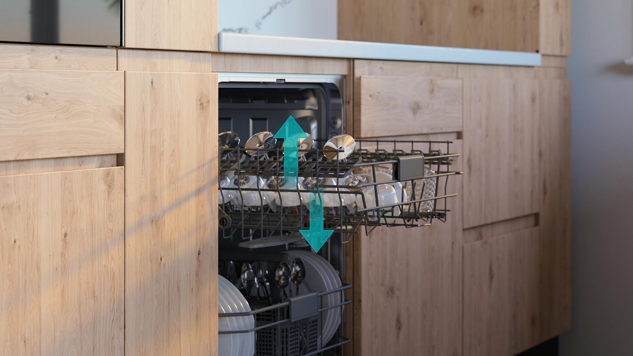 Over de indeling van de VWV440ZWA is extra goed nagedacht, en het testpanel heeft dat duidelijk gemerkt. Wat meteen opviel is dat de machine verbazend ruim is, ruimer dan op het eerste oog lijkt. Daardoor heb je sowieso al veel ruimte, maar omdat je ook nog de bovenste lade in hoogte kan verstellen, is er onderin voldoende plek voor grote pannen. Een van de leden van het testpanel probeerde specifiek een aantal wijnglazen in te ruimen, en ook dat ging zonder problemen. Wat het aanpasbare bestekbakje betreft, waren de meningen wat verdeeld. Een deel van de testers vond het een handige functie, terwijl de rest liever had gehad dat het bakje wat makkelijk uit elkaar gehaald kon worden, en dat er wat meer ruimte was voor breder bestek.