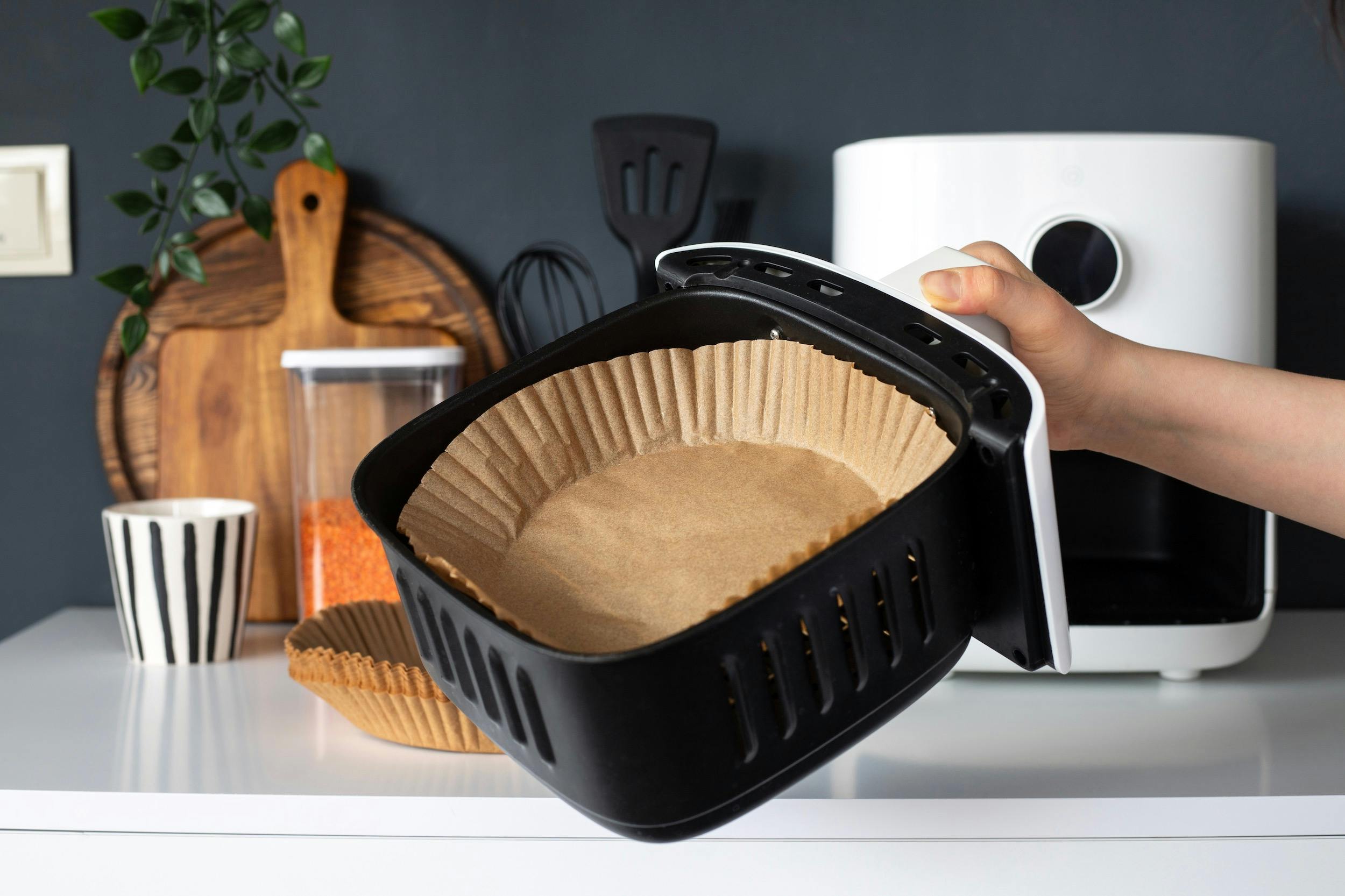 Een handige tip om het schoonmaken van je airfryer makkelijker te maken, is het gebruik van speciale papieren inzetmandjes (link). Deze mandjes zijn ontworpen om in de mand van je airfryer te passen en bieden een beschermende laag tussen je eten en de mand zelf. Hierdoor voorkom je dat voedselresten rechtstreeks in contact komen met de mand, waardoor deze langer schoon blijft en het schoonmaken minder vaak nodig is.