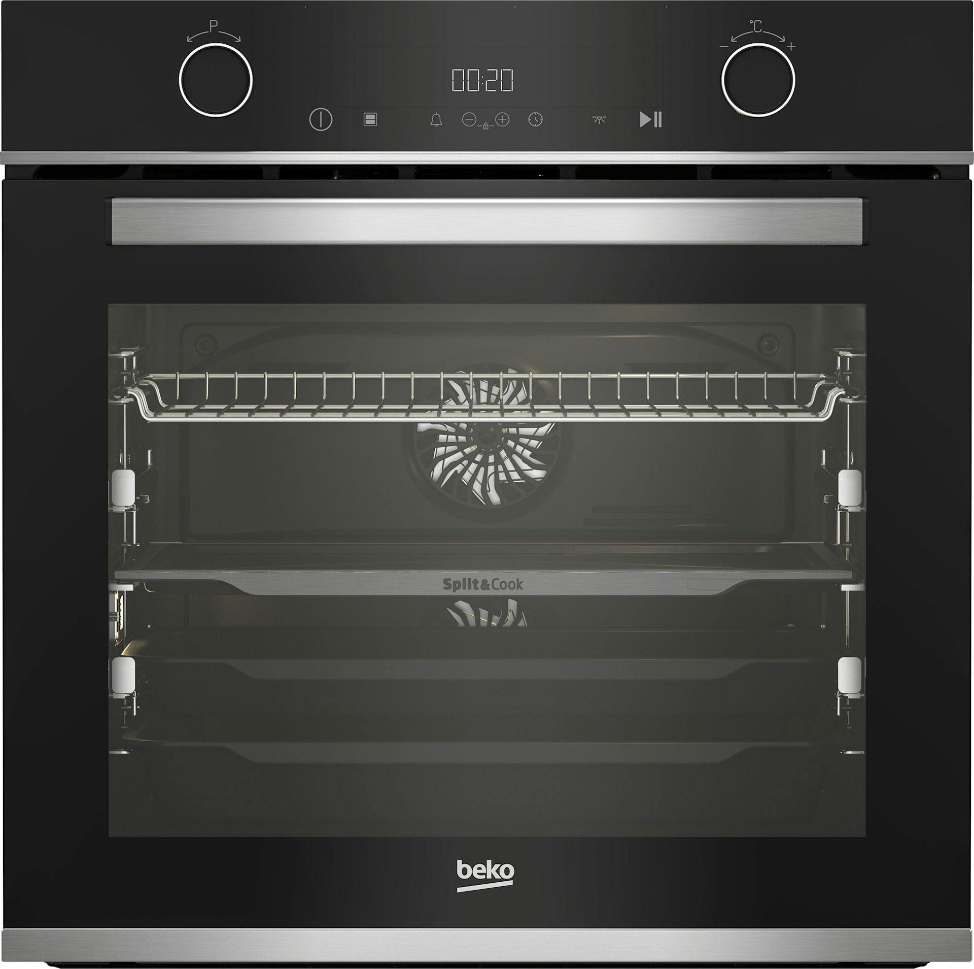 Met de nieuwe inbouwoven Beko BBVM13400XDS kan de kookruimte worden onderverdeeld in meerdere zones. Dit zogeheten Split & Cook-systeem maakt het mogelijk om twee producten te bakken, stomen of grillen met ieder een eigen baktemperatuur en zonder dat de smaken zich vermengen. Het temperatuurverschil kan in zo'n geval 80 °C zijn.