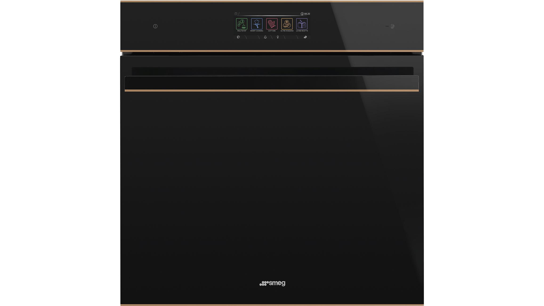Smart Cooking noemt Smeg de functie in haar oven: die omvat maar liefst 150 ingevoerde recepten die je via het touchscreen kunt activeren. Nadat je het gerecht hebt gekozen, bepaalt de oven automatisch alle bakparameters. Een ander slimme functie is SameTime, hiermee kun je gerechten met verschillende kook- of bakmethoden tegelijkertijd bereiden. De oven is tevens een magnetron en stoomoven. Communicatie met de oven gaat via de Smeg Connect-app.