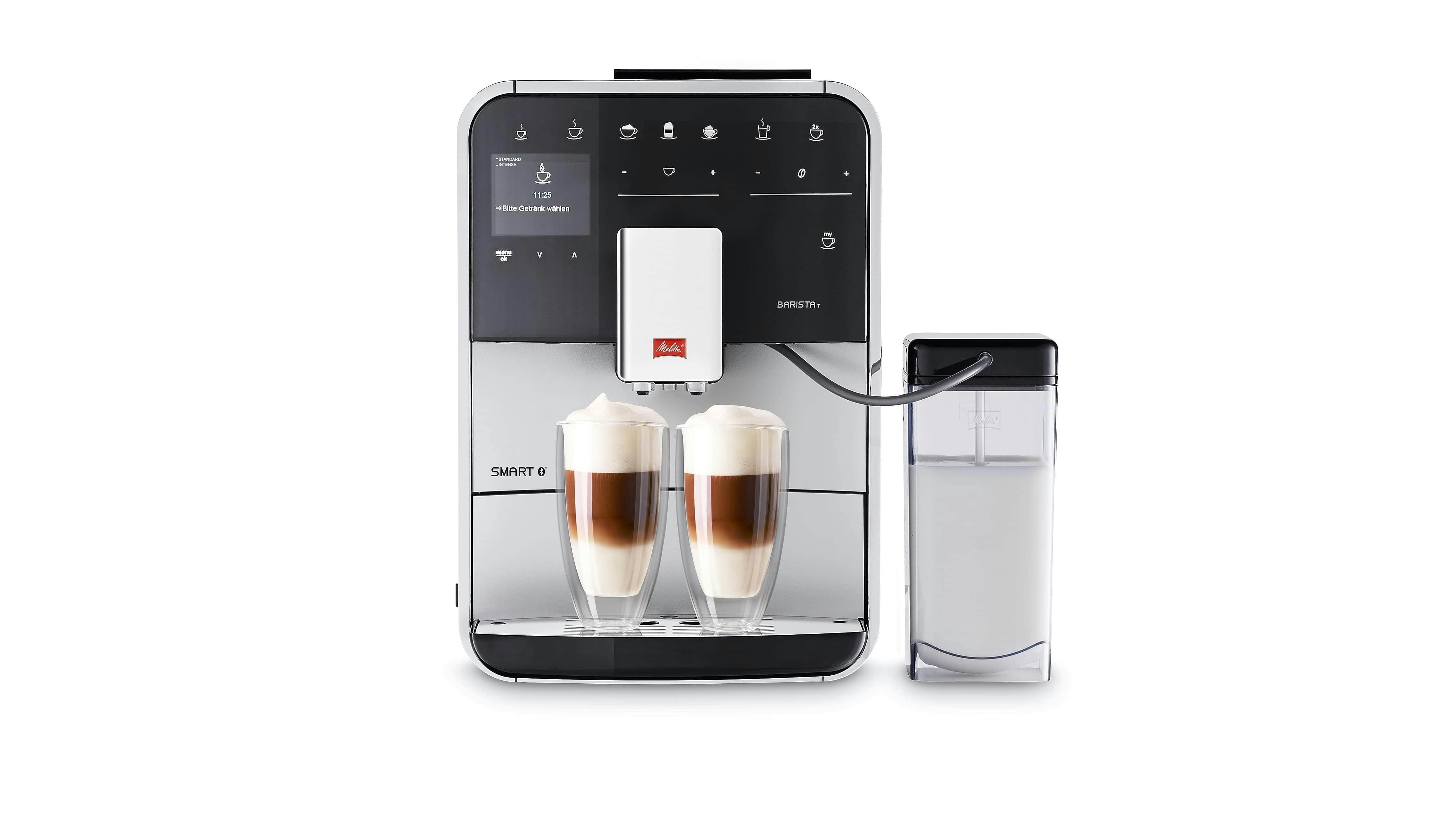 Een volautomatische espressomachine met smartphone-besturing voor nog geen duizend euro? Met de T Smart van Melitta kun je achttien verschillende koffiesoorten bereiden, van flat white tot cappuccino en van latte macchiato tot ristretto. Er zijn vier koffieprofielen in te stellen, zodat je eenvoudig je favoriete koffie ‘s ochtends tevoorschijn kunt toveren. De F830-101 beschikt tevens over automatische reinigingsprogramma’s.