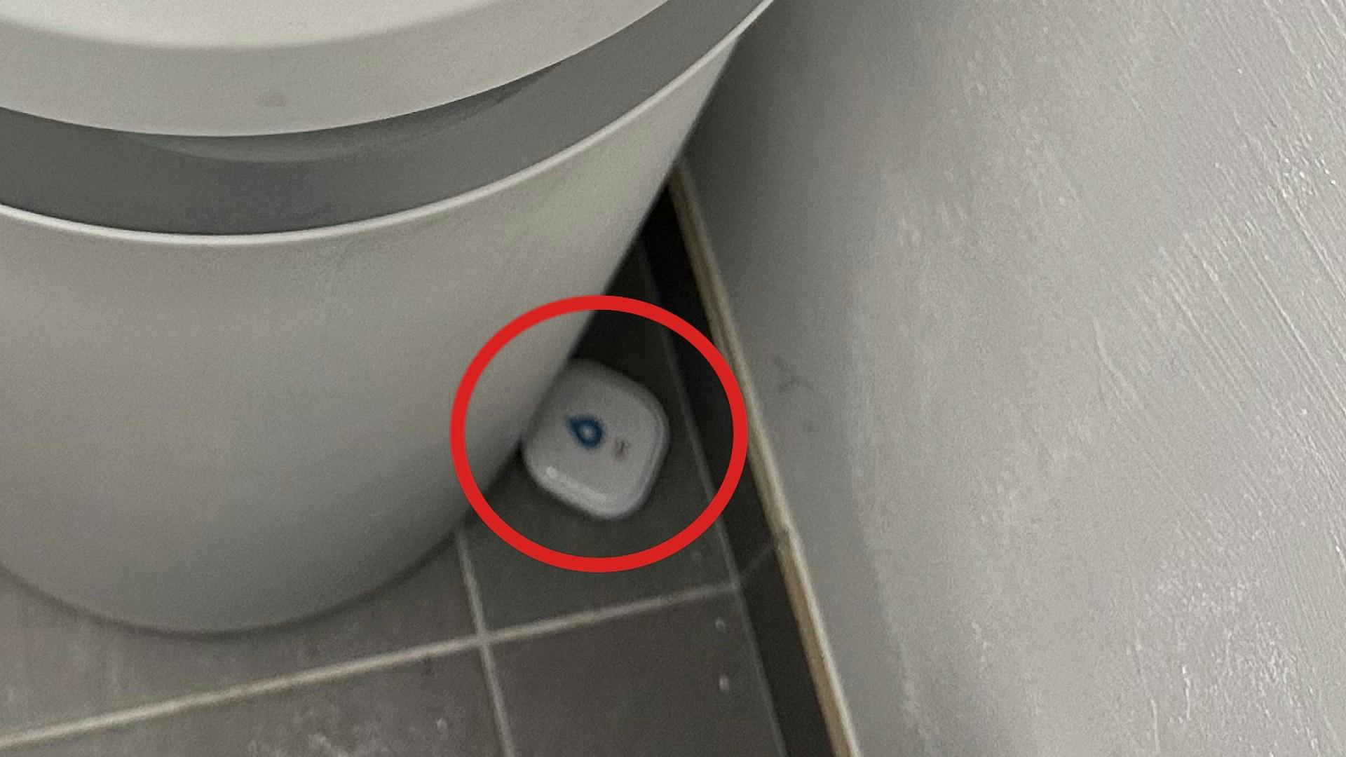 💧 Tip: Wateralarm Het is verstandig om een wateralarmpje neer te leggen naast de waterontharder, gewoon op de grond (zie foto hieronder). Elk op de waterleiding aangesloten apparaat kan natuurlijk gaan lekken - en dat geldt dus óók voor een waterontharder. Een wateralarm wordt meestal geleverd met een batterij die jaren meegaat, dus je hebt er verder geen omkijken naar. En áls het eens mis gaat, dan attendeert een luide alarmtoon je op het onheil dat gaande is. Hoofdkraan dichtdraaien en het leed is alweer geleden.