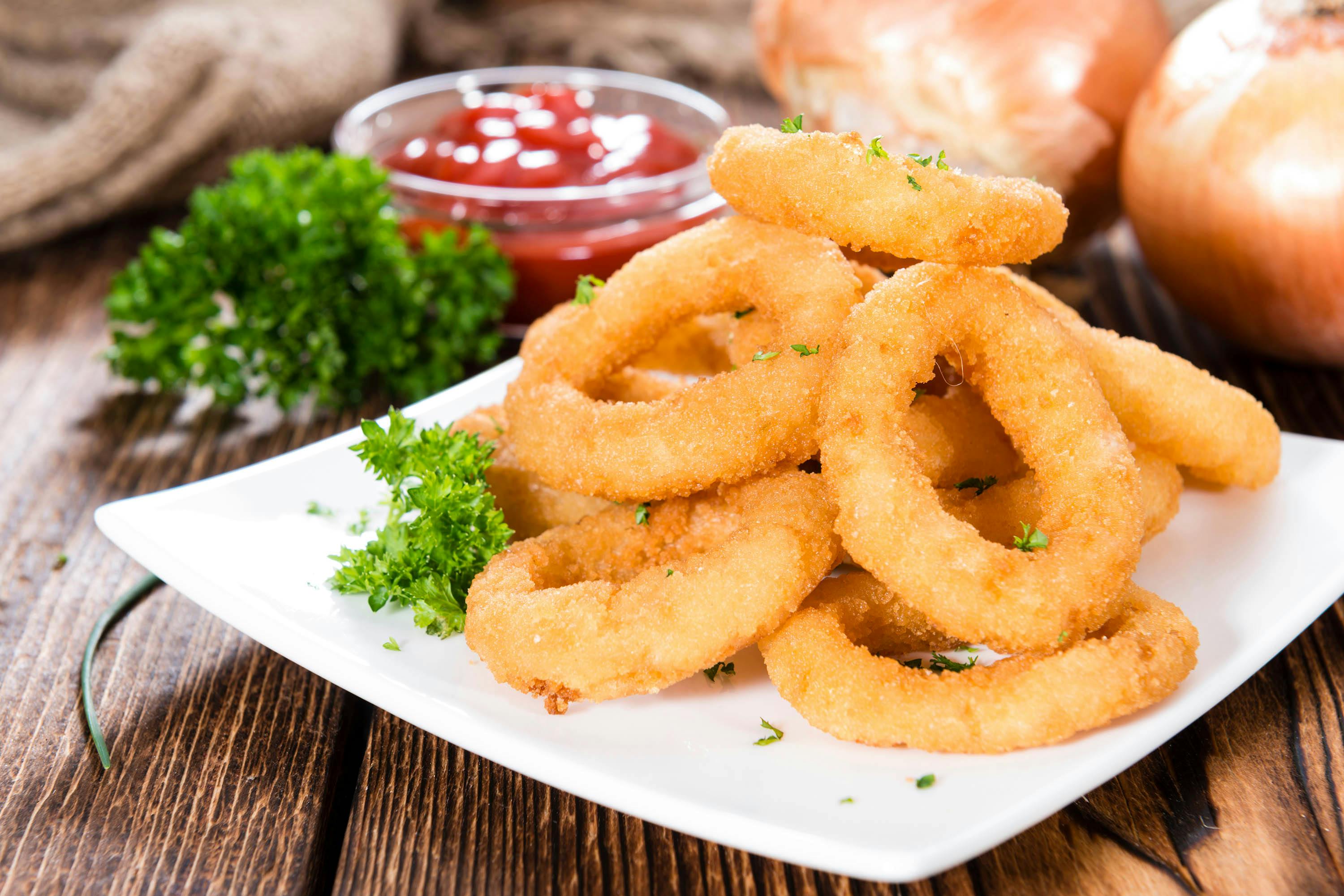 Krokante uienringen voor de borrel