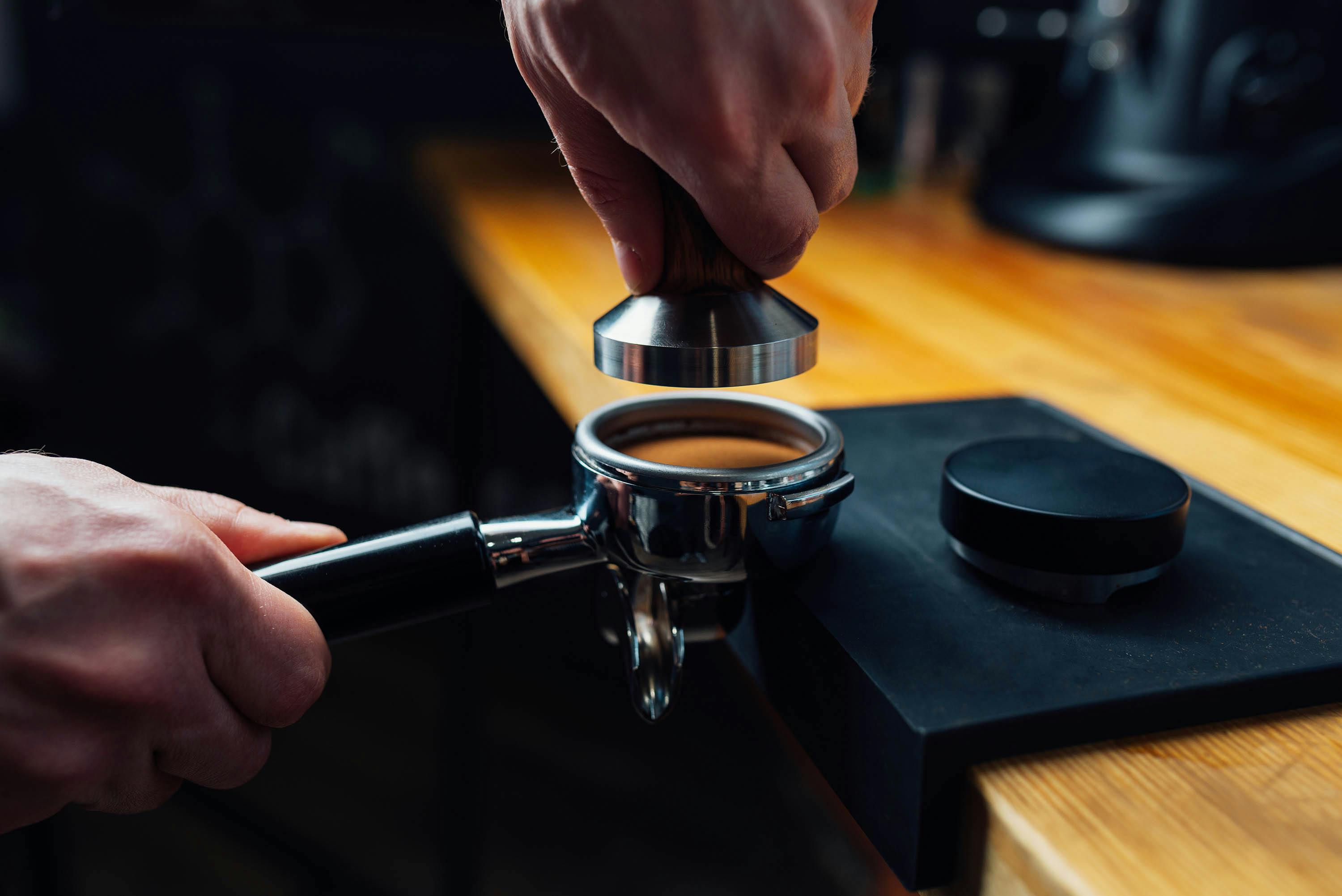 ☕ Tip! Oefen op een consistente tamperdruk. Een richtlijn is om ongeveer 15 kilogram druk te gebruiken – lastig precies te meten, maar onthoud: consistentie is het belangrijkst!