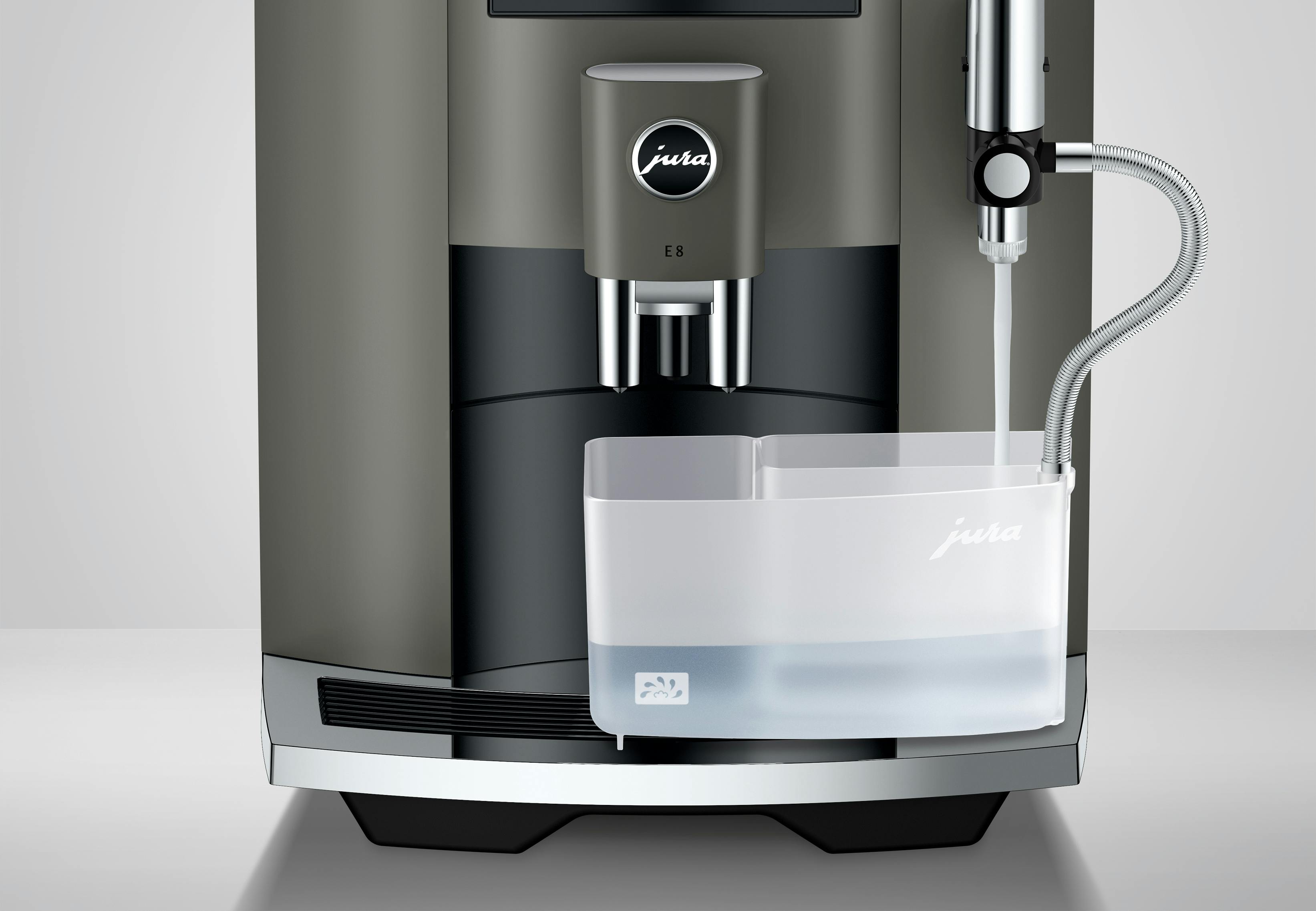 Bij het ontwikkelen van koffiemachines besteedt JURA veel aandacht aan het design. Zo is de E8 heel herkenbaar door consequent gebruik van hoogwaardige materialen en gedetailleerde afwerking. De E8 is hierdoor tijdloos en past in elke keuken.