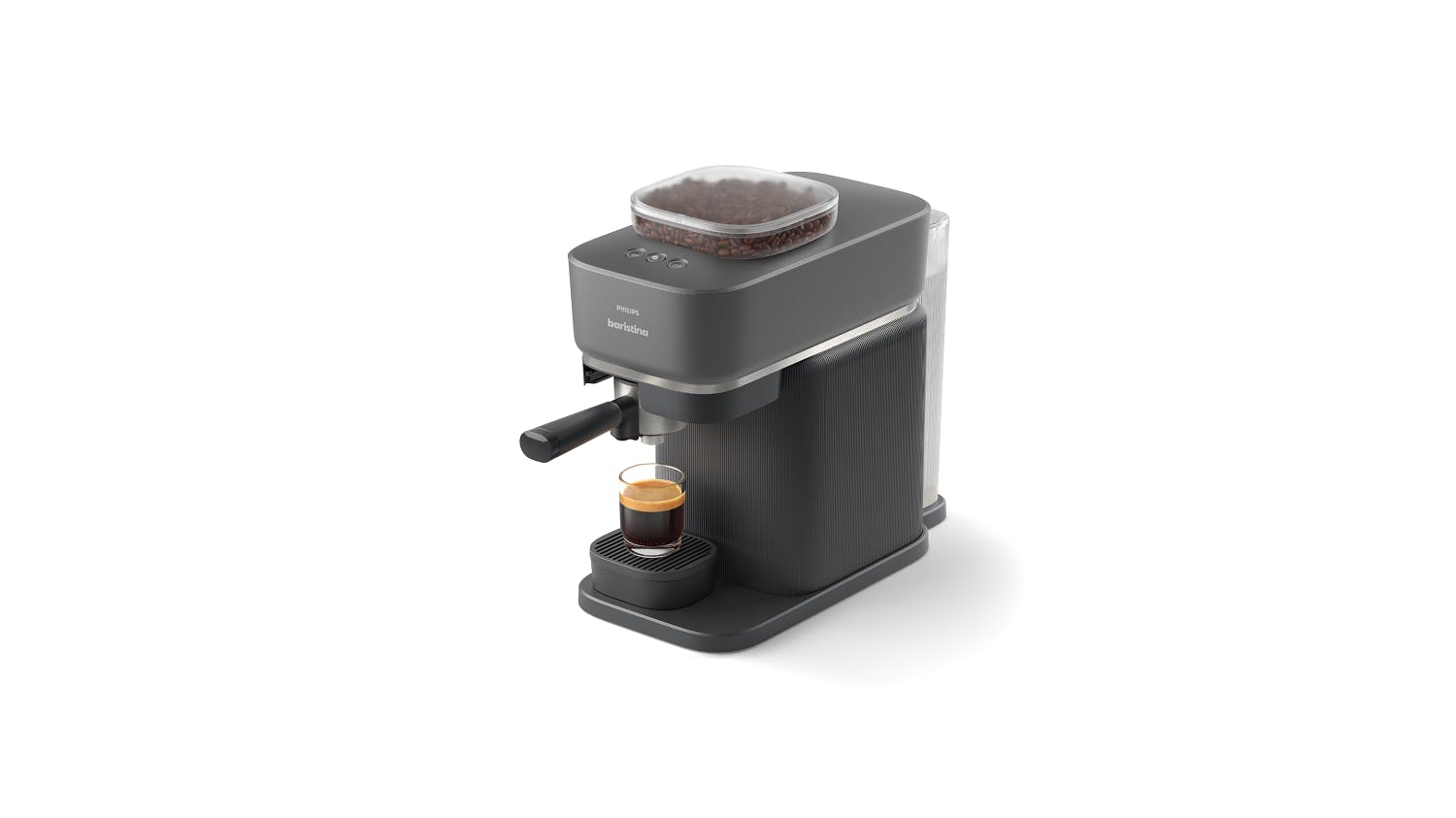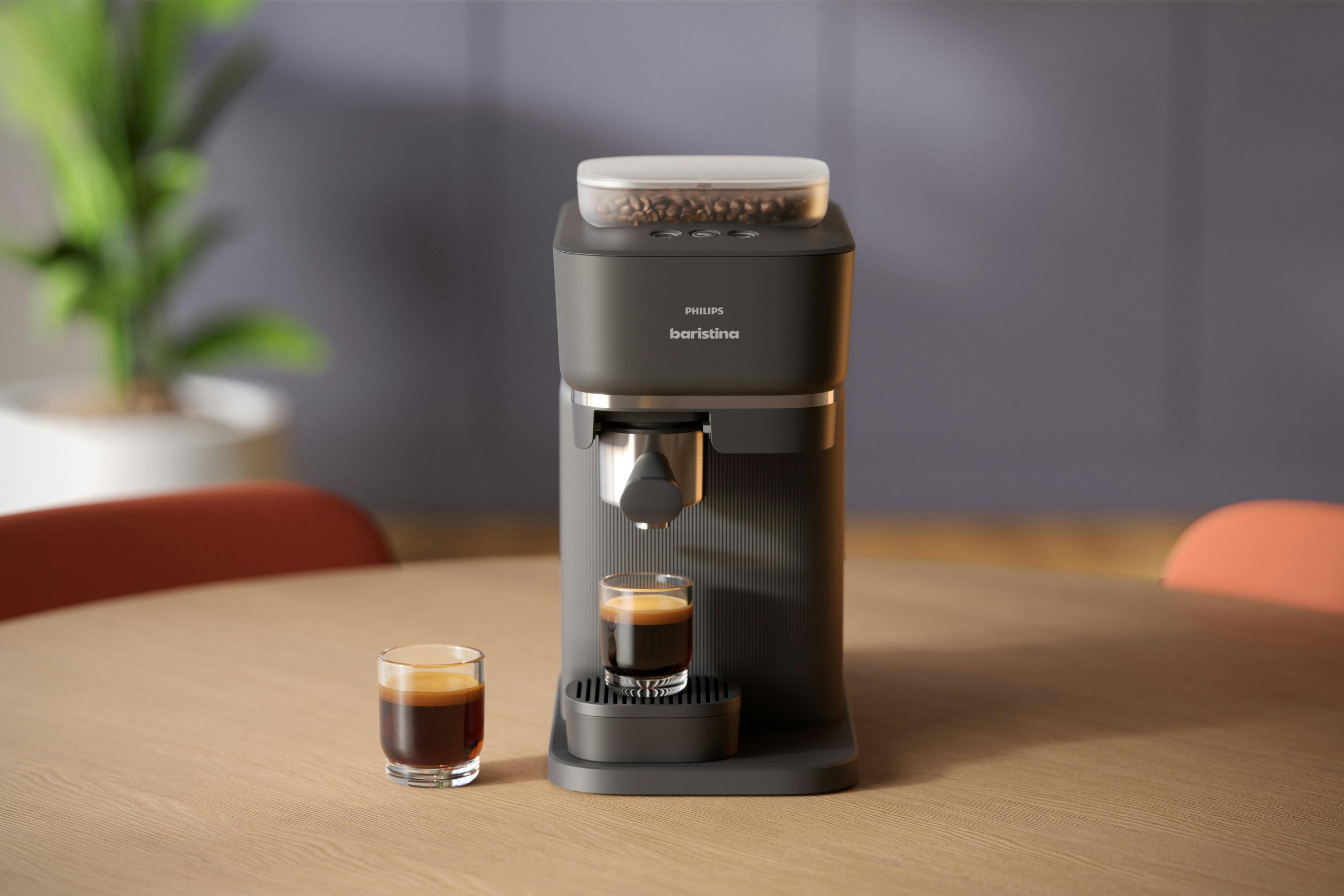 De Baristina is een alternatief voor de grote espressomachines, die vaak ook wat meer expertise en handelingen vereisen. Dat heeft Philips anders aangepakt: de nieuwe Baristina bedien je met een enkele beweging van je hand: vul het apparaat met koffiebonen, selecteer espresso of lungo en beweeg het portafilter van links naar rechts.