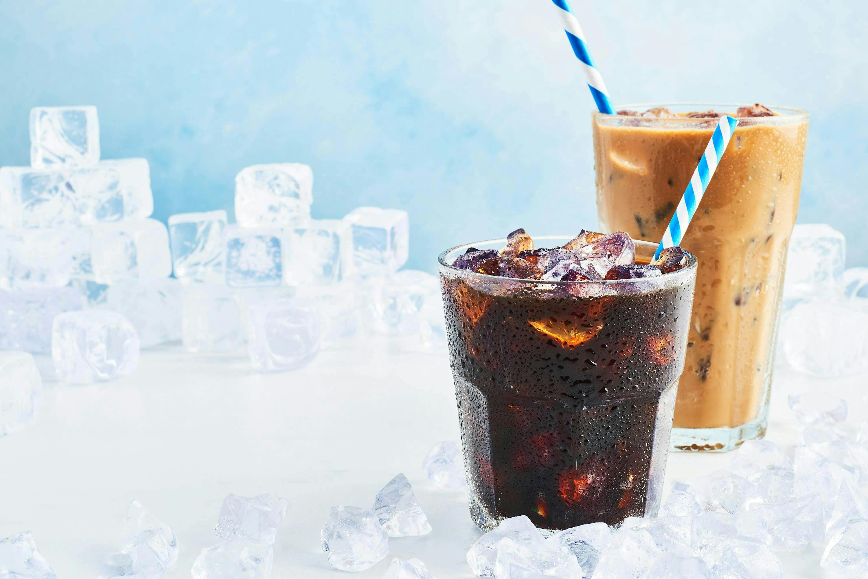 In beide gevallen begint het met sterke koffie. Hoe sterker, hoe beter, want ijsblokjes verdunnen de smaak. Zet bijvoorbeeld een dubbele espresso of gebruik een koffiemachine op de hoogste intensiteit. Laat de koffie afkoelen, giet 'm over een glas vol ijsblokjes en voeg melk of plantaardige drink (haver, amandel of soja) toe als je dat lekker vindt.
