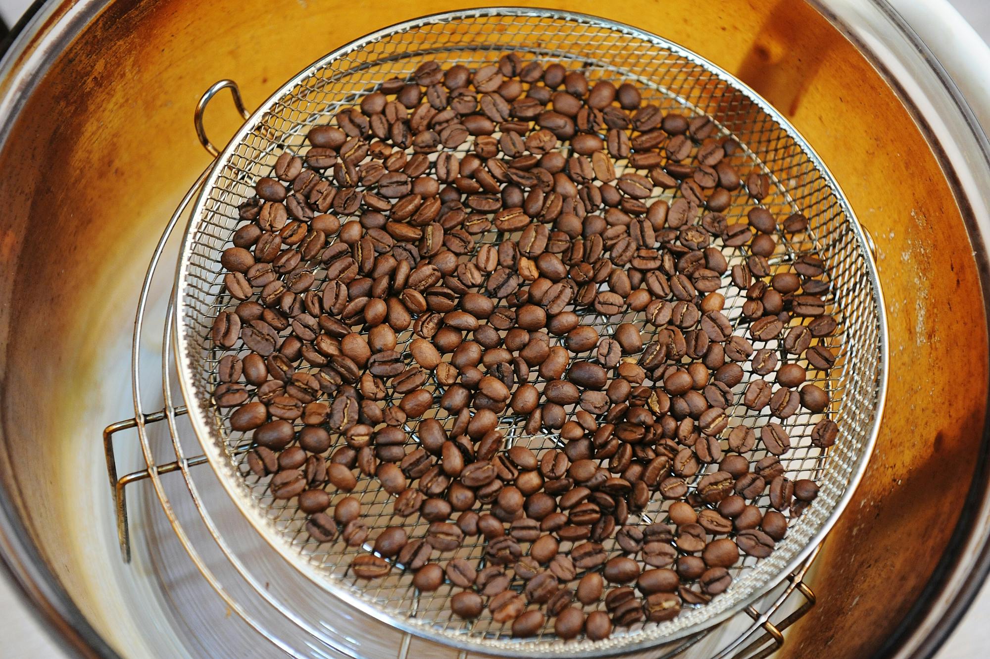 Zodra de bonen klaar zijn, stop je het brandproces en laat je de bonen afkoelen.