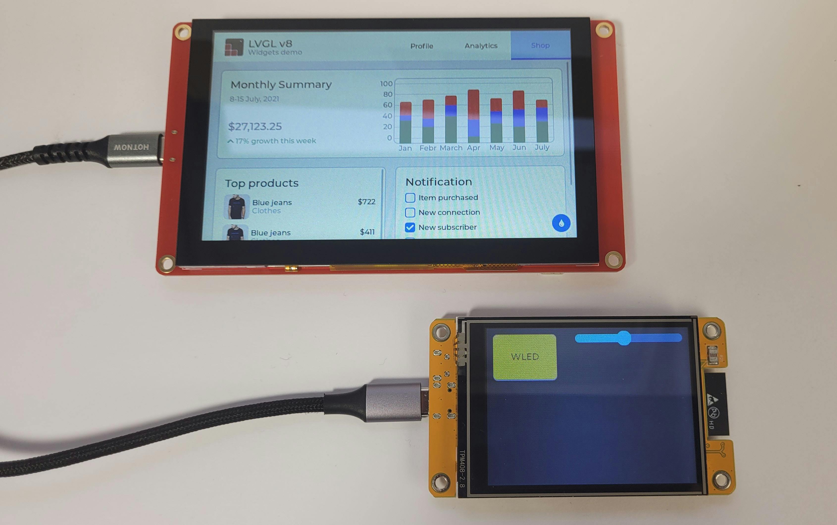 Met LVGL kun je via widgets een gebruikersinterface bouwen.