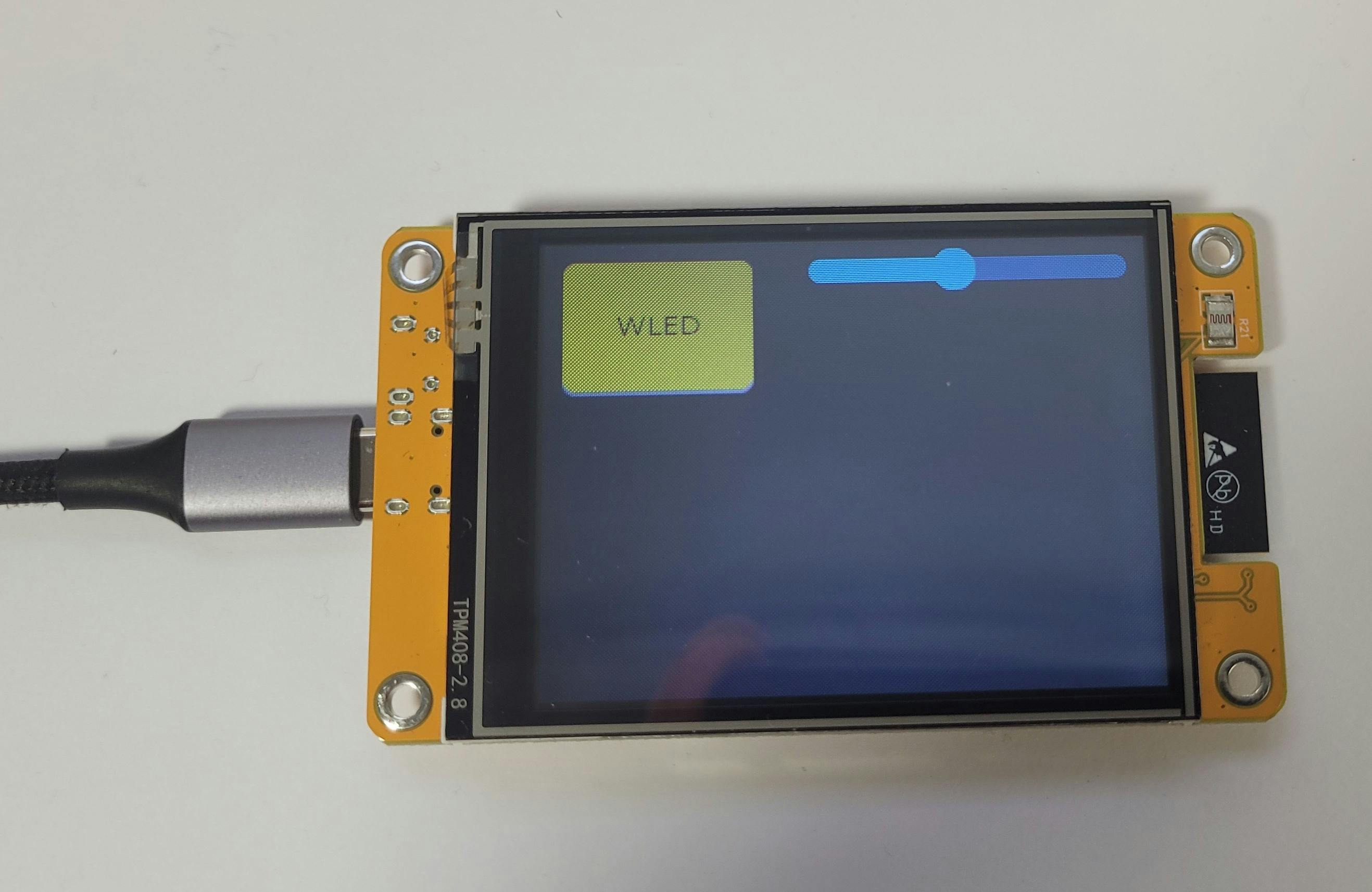 Overigens bevat het apparaat meestal een voorgeprogrammeerde demo met een gebruikersinterface op basis van LVGL. Die zie je als je hem zo uit de doos op een voeding aansluit. Je kunt daarmee meteen de werking controleren. Je zult bij een model met resistief aanraakscherm overigens iets harder moeten drukken dan je misschien gewend bent.