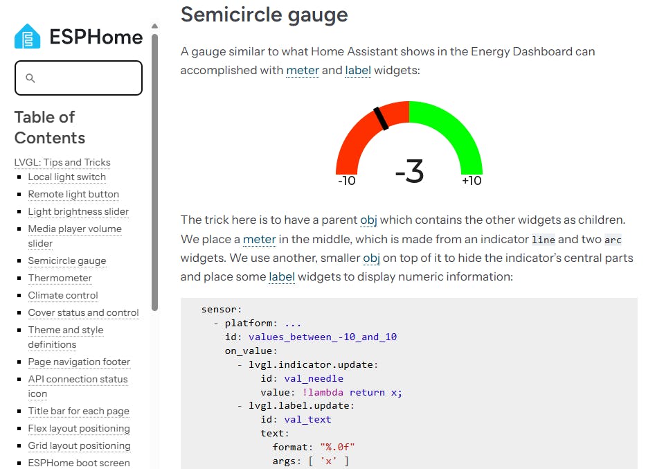 De website van ESPHome heeft veel voorbeelden voor het werken met LVGL.