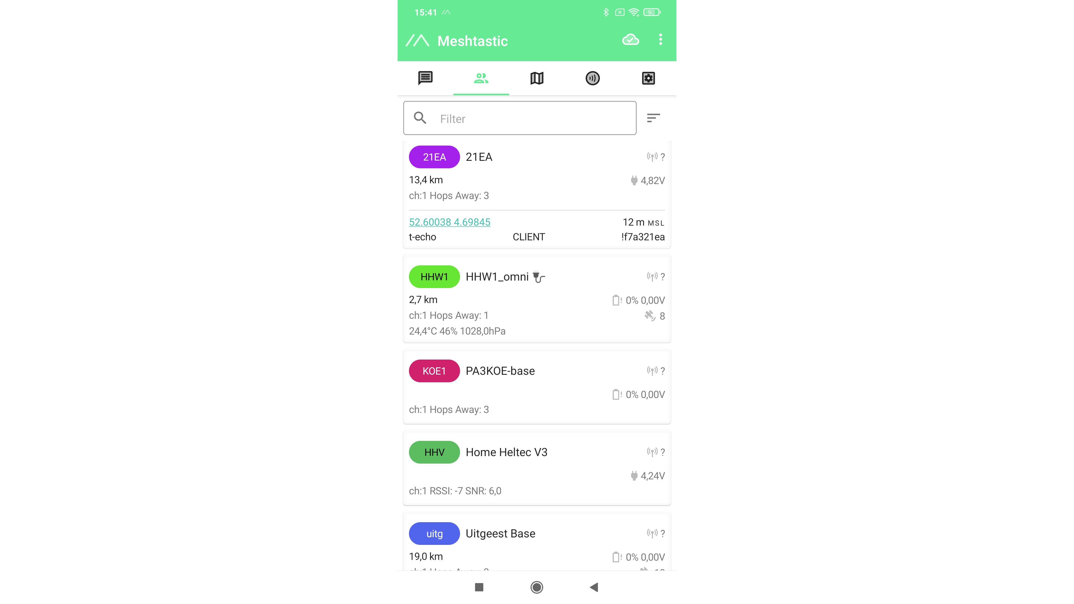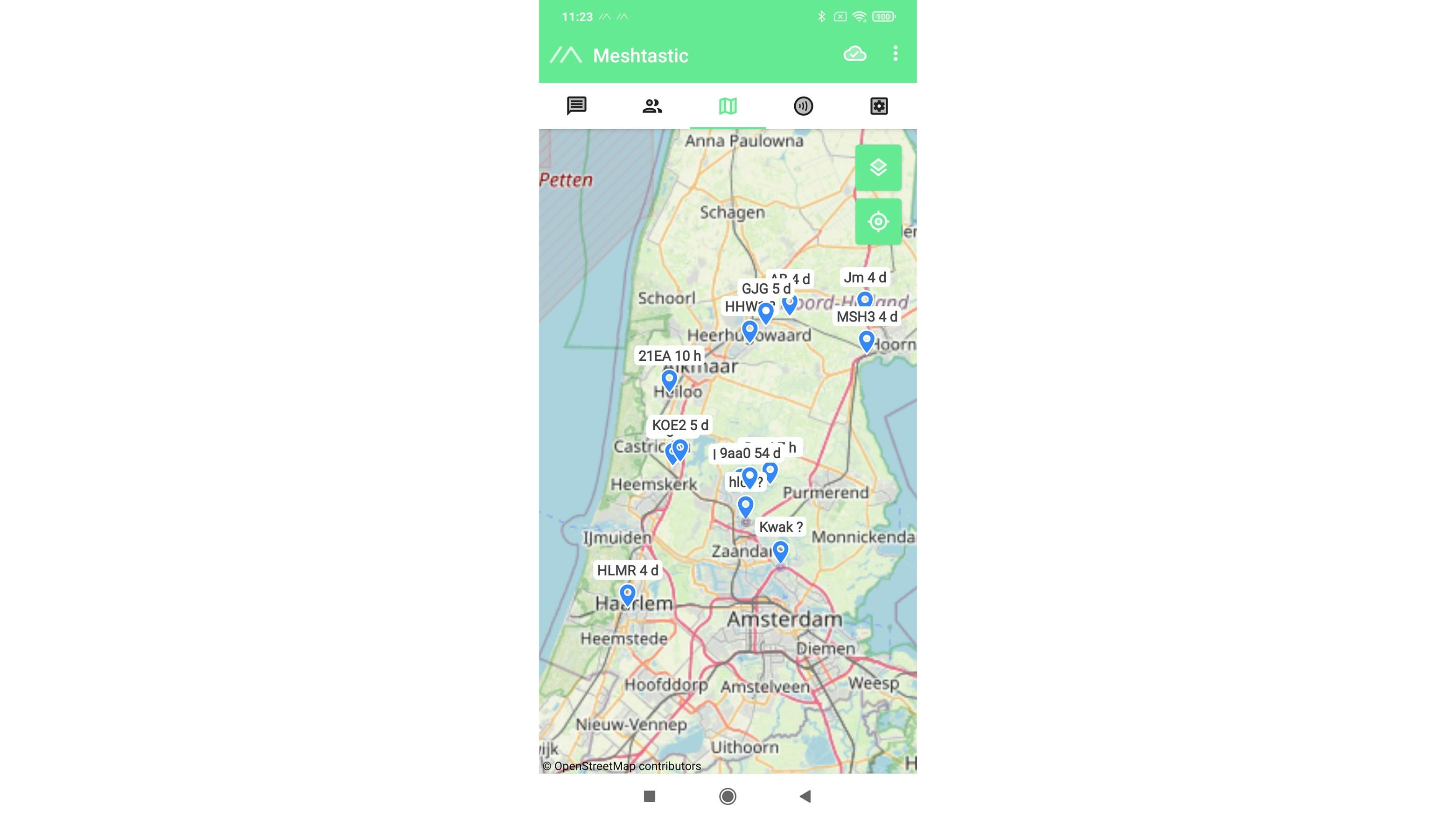 In de Meshtastic-app kun je locaties van nodes op een kaart bekijken.