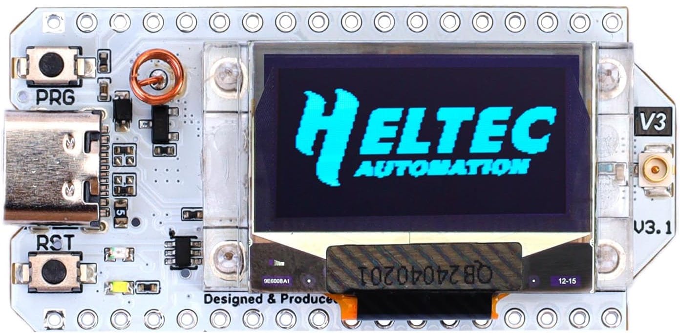 Ontwikkelbordjes voor Meshtastic hebben vaak een klein scherm, zoals dit exemplaar van Heltec.