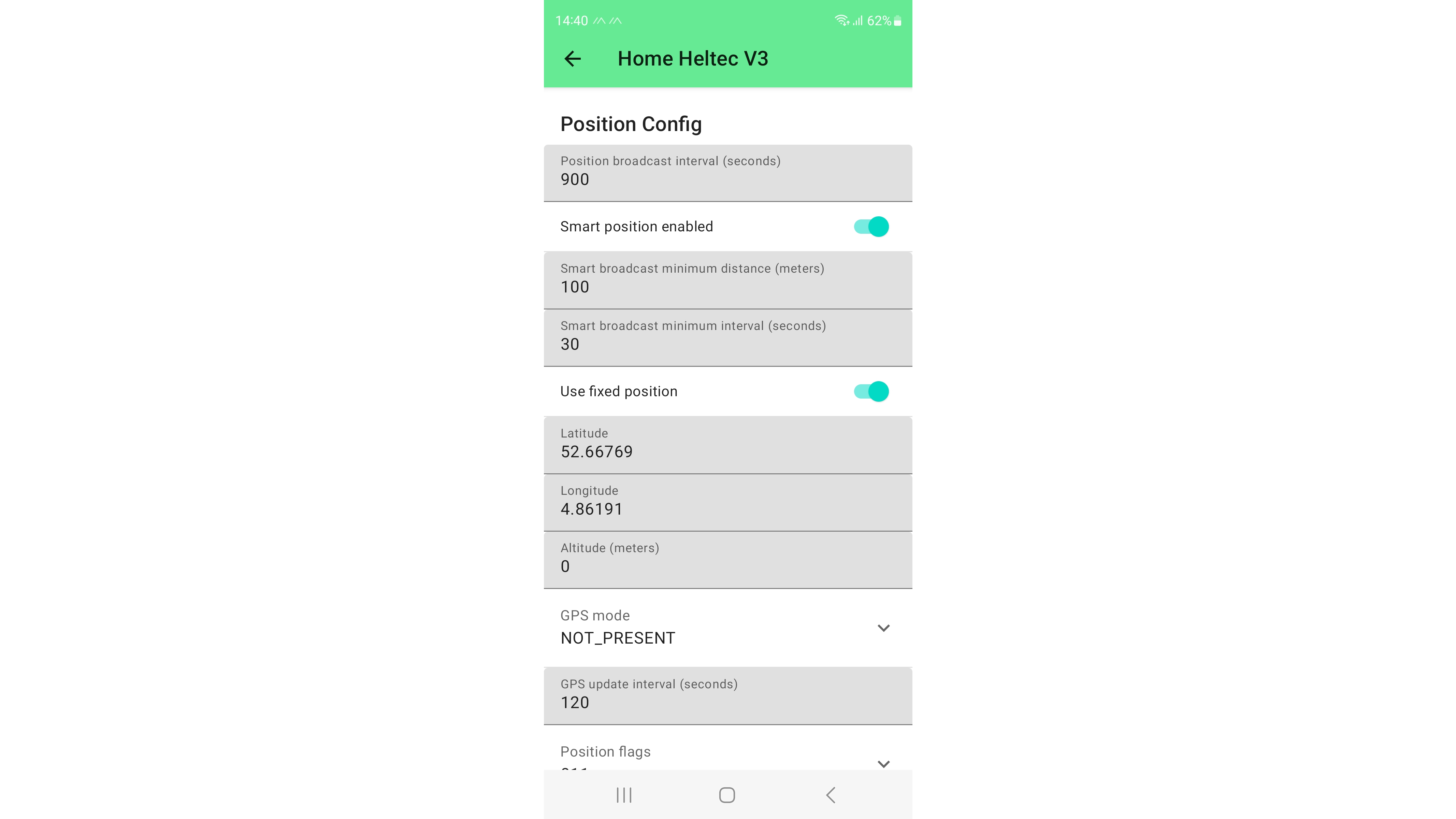 Zoals de app al duidelijk maakt, wordt bij Meshtastic vaak gebruikgemaakt van gps. Om de instellingen te zien, open je Radio configuratie en ga je naar Position. Voor de positiebepaling kun je een gps-module gebruiken, maar ook de locatie van een gekoppelde smartphone. Voor dat laatste moet je de Meshtastic-app wel toegang geven tot je gps-locatie.