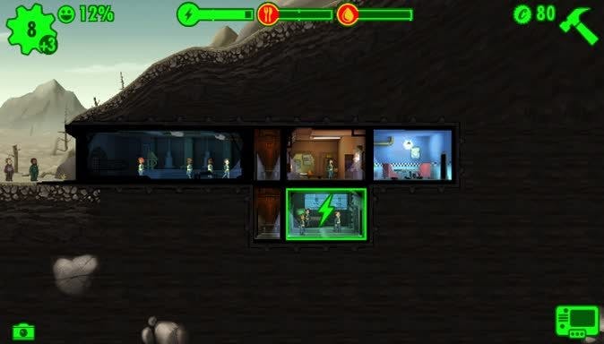 In Fallout Shelter bouw je, met behulp van verschillende personeelsleden, verschillende kamers. Deze kamers geven je rendement in de vorm van energie, eten en water. Je kunt dingen aanschaffen door middel van punten die je vanaf het begin van de game krijgt. Als je de opdrachten succesvol hebt uitgevoerd, ontvang je ook punten die je weer kunt investeren.