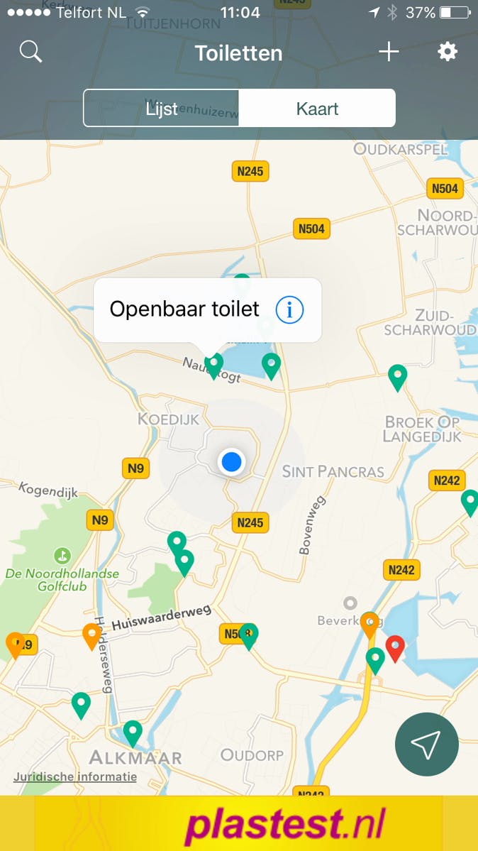 Het vinden van een openbaar invalidentoilet is soms best lastig. De app HogeNood verzamelt locaties van openbare toiletten in Nederland en België en geeft hierbij ook aan in hoeverre ze toegankelijk zijn met de rolstoel. Aan de hand van jouw geografische locatie bekijk je een lijst of plattegrond met beschikbare toiletten in de omgeving. Let hierbij goed op of het logo van een invalidentoilet zichtbaar is. Tik de instellingenknop (tandwiel) aan en activeer de schakelaar achter Rolstoelvriendelijk. Heb je een geschikte locatie gevonden?
