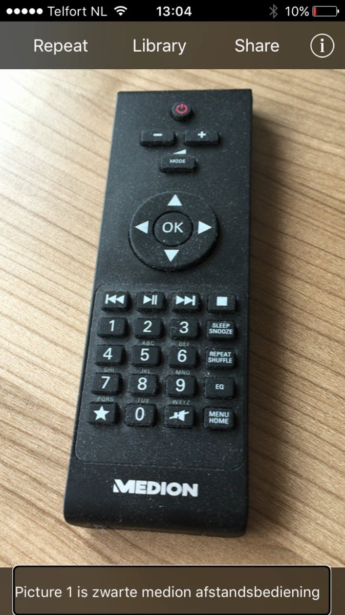 Tip 05 Bij een foto van een afstandsbediening vertelt TapTapSee zelfs van welk merk dit apparaat is.