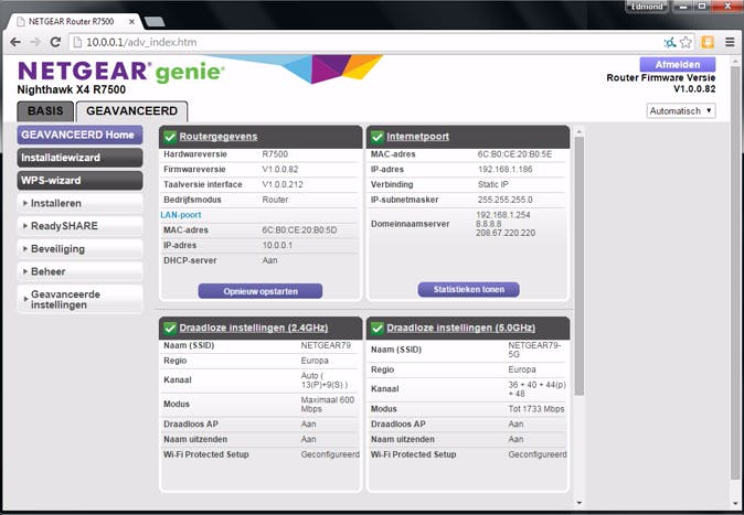 Een snelle manier om dit uit te vinden, is door merk en model van de huidige router te noteren en op de website van de leverancier te kijken welke functies dat apparaat allemaal heeft. Is het alleen een router? Zit er ook wifi op? Heb je er via usb een externe harde schijf op aangesloten die je als NAS gebruikt? Zit er ook een modem in? Bepaal zo de functies die de nieuwe router ook moet hebben. Bedenk verder of je functies die nu in een apart apparaat zitten, bijvoorbeeld modem of accesspoint, ook in de nieuwe router wilt hebben. Minder apparaten betekent minder kabels en vaak ook minder stroomverbruik.