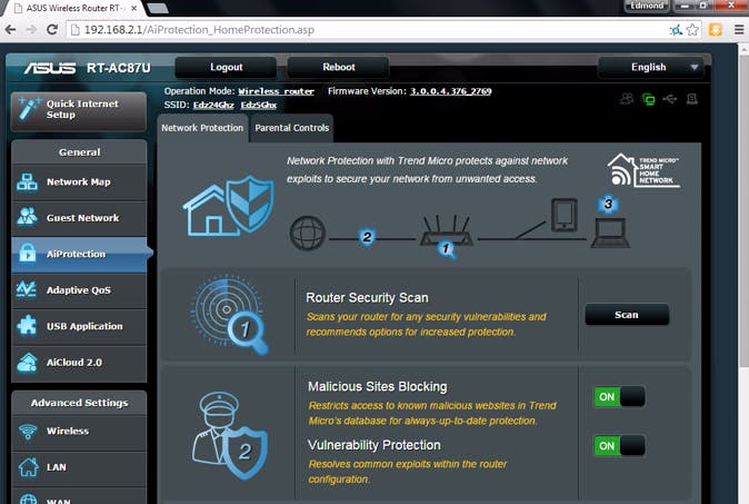 Een netwerk moet goed zijn beveiligd en dat geldt zeker ook voor het thuisnetwerk. Dus een firewall op de router en een flinke WPA2-sleutel om het draadloze netwerk te versleutelen. Maar sommige routers bieden meer. Zo biedt Asus op enkele routers de mogelijkheid om op de router al het netwerkverkeer te scannen en zo het thuisnetwerk extra te beveiligen. Asus werkt hiervoor samen met beveiligingsexperts van Trend Micro.
