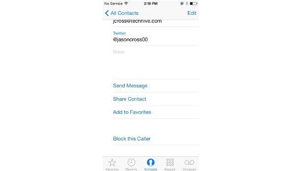 Je kunt op iemand op twee manieren blokkeren: Via je contactenlijst of via de Settings app. Om iemand die al in je lijst met contactpersonen staat, open de Contacts app, selecteer een contactkaart, scrol helemaal omlaag en druk op Block this Caller. Als je iemand in de Recents lijst van de Phone app blokkeert zul je op de "i" moeten drukken om hun contactkaart te zien te krijgen. Vanaf dat punt is het proces identiek.