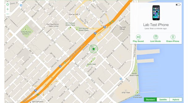 Om je telefoon of tablet te vergrendelen of te wissen, ga naar iCloud.com op je computer en log in met je Apple ID en wachtwoord. Selecteer vervolgens Find My iPhone en Devices en selecteer je apparaat. Find My iPhone zal de locatie van je apparaat traceren en je de mogelijkheid geven om het een geluid af te laten spelen (handig als je toestel tussen de kussens van je bankstel geglipt is), je telefoon in de "verloren" modus te zetten (die beschermt je telefoon met een PIN en zet een bericht op het lock screen), of je apparaat compleet te wissen, waarmee het in de Activation Lock modus terechtkomt.