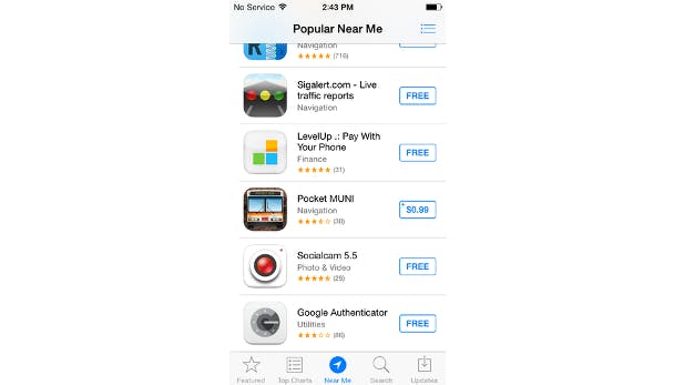 Met iOS 7 kun je zien welke apps populair zijn in je omgeving. Het lijkt een beetje overbodig, maar het akn je helpen om een aantal interessante apps te ontdekken die je misschien anders niet zou gebruiken, en je kunt apps vinden die handig zijn in een nieuwe omgeving - zoals lokale transport apps.