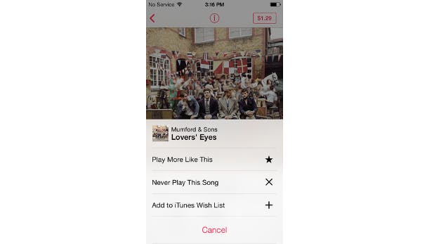 Okay, misschien heb je wel een bloedhekel aan Imagine Dragons. Wie ben ik om daarover te oordelen? Het is net zo gemakkelijk om nummers die je nooit meer wilt horen te blokkeren. Druk op het sterretje, en vervolgens op ever Play This Song, en iTunes Radio zal dat nummer van je station verbannen. Helaas lijkt het er niet op dat je artiesten kunt blokkeren, dus het kan dat, ook al heb je "Radioactive" geblokkeerd, je nog steeds "It's Time" te horen krijgt.
