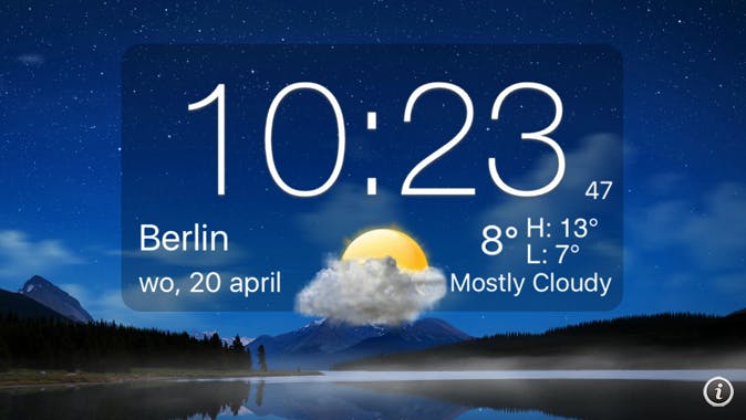 Je kunt de interne wekfunctie van je apparaat gebruiken, maar er zijn ook een aantal interessante apps verkrijgbaar die van je smartphone of tablet een mooi nachtklokje maken. Night Clock is een simpele wekker-app voor Android. De app zorgt ervoor dat het scherm aan blijft staan als de app draait, uiteraard is het noodzakelijk dat je je toestel aan de stroom hebt liggen. Met een tik op het scherm kun je vervolgens een wekker instellen. Een iets uitgebreidere wekker maak je met de app Nightstand Central. Deze app is voor iOS verkrijgbaar en biedt naast de tijdsweergave ook opties om in slaap te vallen met ruis of andere geluiden en je te wekken met je favoriete muziek. Handig is bovendien dat je kunt instellen dat de zaklampfunctie van je iPhone wordt geactiveerd als je het apparaat schudt. Bovendien kun je kiezen uit verschillende achtergronden en kan de app zelfs het weer tonen.