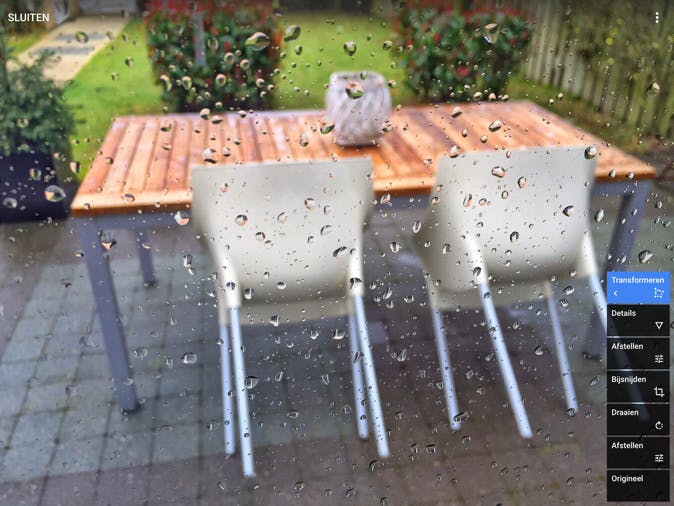 Ben je klaar met de bewerkingen in de categorie Afstellen? Tik onder in het scherm op het vinkje om terug te keren naar het beginscherm van Snapseed. Tik opnieuw op het plusteken om een nieuwe laag aan de stapel toe te voegen. Bijvoorbeeld om de foto bij te snijden (Bijsnijden) of om een scheve foto netjes rechtop te zetten (Draaien). Terug op het beginscherm van Snapseed zie je boven in het scherm altijd hoeveel bewerkingslagen je al hebt toegevoegd.