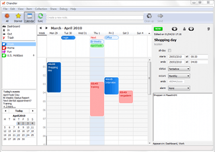 Er bestaan tientallen programma's waarmee u agenda's of takenlijsten kunt delen, maar meestal kunnen deze toepassingen niet overweg met meerdere besturingssystemen. Het open source-pakket Chandler blinkt uit in het delen van informatie, want dat kan namelijk tussen Windows-, Mac- en Linux-systemen. Chandler bundelt een agenda, takenlijsten en notities. Het is mogelijk om bestaande kalenders te importeren en uw agenda te synchroniseren met iCal of Google Calendar. Dankzij de online Chandler Hub is het zelfs mogelijk om uw data op iedere computer met een internetverbinding op te vragen. Gebruiken meerdere mensen uw computer? Chandler is eenvoudig te beveiligen met een wachtwoord. Een Nederlandse versie is helaas (nog) niet beschikbaar.