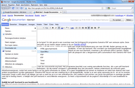 Bepaal zelf in welk bestandsformaat u het document bewaart op uw computer.