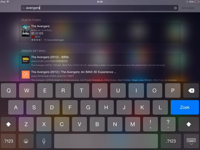 Wanneer je voorheen iets zocht in Spotlight, dan werd er in diverse facetten van iOS gezocht, zoals in je lijst met contactpersonen, mails, iMessage enzovoort. Sinds kort is Spotlight echter een stuk veelzijdiger. Wanneer je nu iets in Spotlight zoekt, krijg je niet alleen resultaten te zien uit de App Store (iets dat wij soms wat verwarrend vinden), maar ook resultaten van internet. Je kunt Spotlight dus nu ook gebruiken als online zoekmachine en dat scheelt weer een paar handelingen.