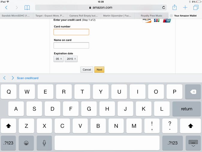 Dit is een functie waar we heel enthousiast van worden. De gegevens van je creditcard invullen wanneer je iets wilt kopen vanaf je iPad is natuurlijk erg irritant, dat virtuele toetsenbord werkt nog altijd niet optimaal. Dan kun je sleutelhanger gebruiken, maar niet iedereen vindt het fijn om creditcardgegevens centraal op te slaan. Maar wist je dat het ook nog anders kan? Wanneer je op een site bent waar je je creditcardgegevens moet invullen, druk je op het eerste veld dat je moet invullen en druk je op de optie Scan creditcard (deze optie verschijnt in het toetsenbord). Richt je camera nu op je creditcard en de gegevens worden automatisch ingevuld.