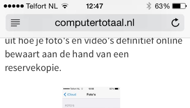 Druk op de statusbalk om direct terug te keren naar het begin van een artikel.