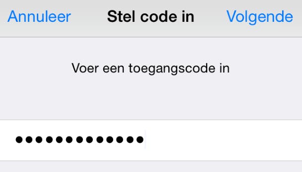 Standaard bestaat het codeslot op je iPhone uit vier cijfers. Hiermee zijn er exact tienduizend combinaties mogelijk. Vind je dat niet veilig genoeg? In plaats van een pincode kun je ook een sterk wachtwoord instellen. Navigeer naar Instellingen / Toegangscode en deactiveer de schakelaar achter Eenvoudige code. Vul daarna via Zet code aan of Wijzig toegangscode het sterke wachtwoord in.